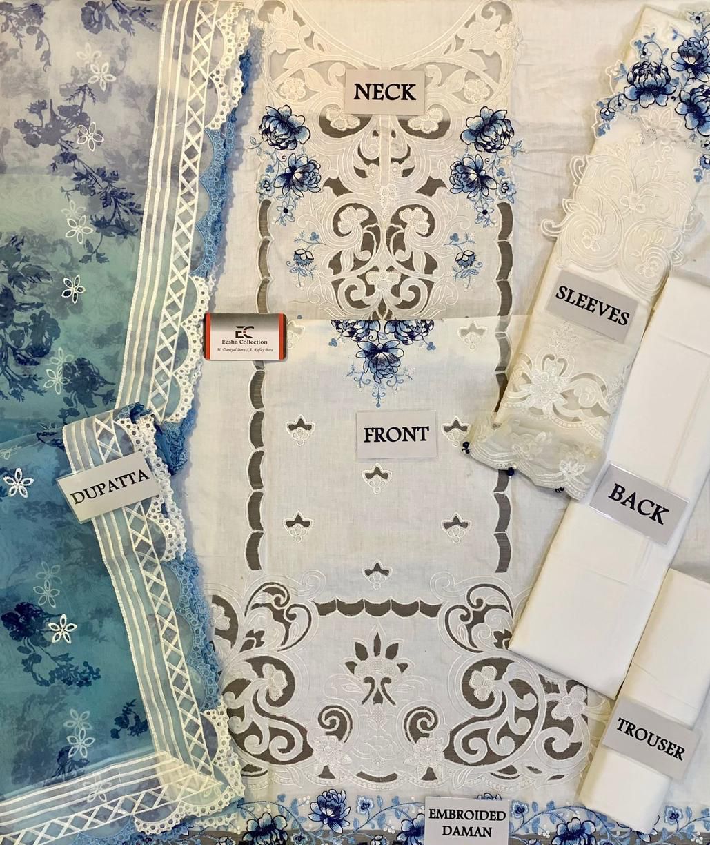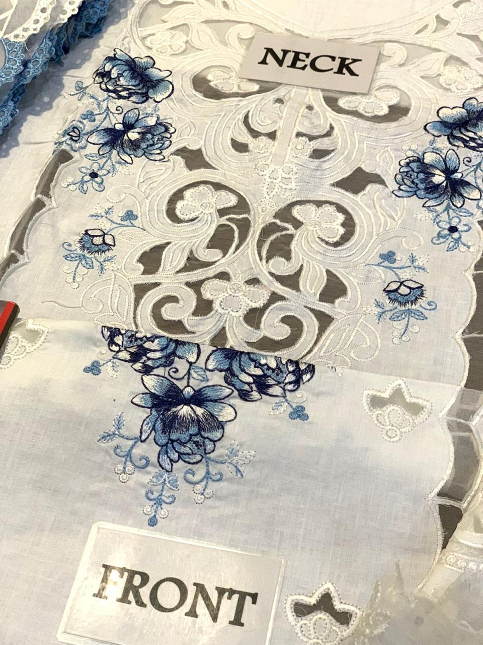 SOFT COTTON FULLY HEAVY EMBROIDERED SLEEVES WITH ORGANZA EMBROIDERED ON FABRIC WITH HANGING TUSSLES ON CUFF PATCH