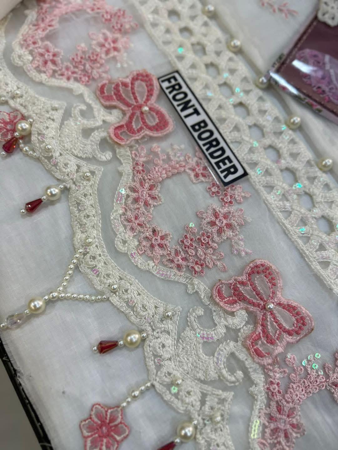 ●FRONT BORDER EMBROIDERED With 3D Flowers, Handwork, Cutwork & Tassel’s