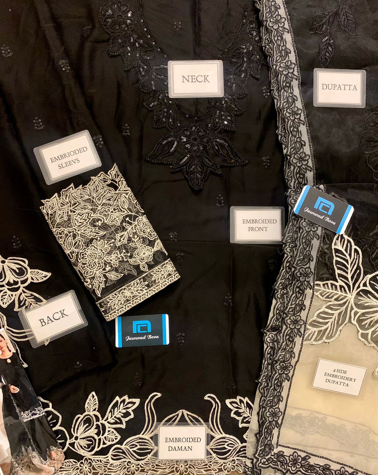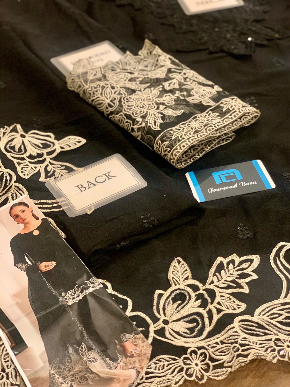*Chiffon embroidered spangle work back with heavy embroidered spangle work back daman border*