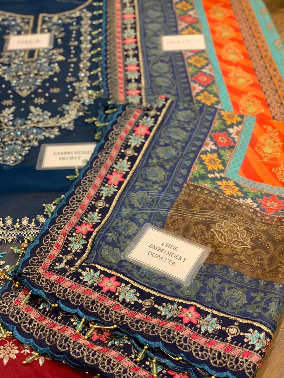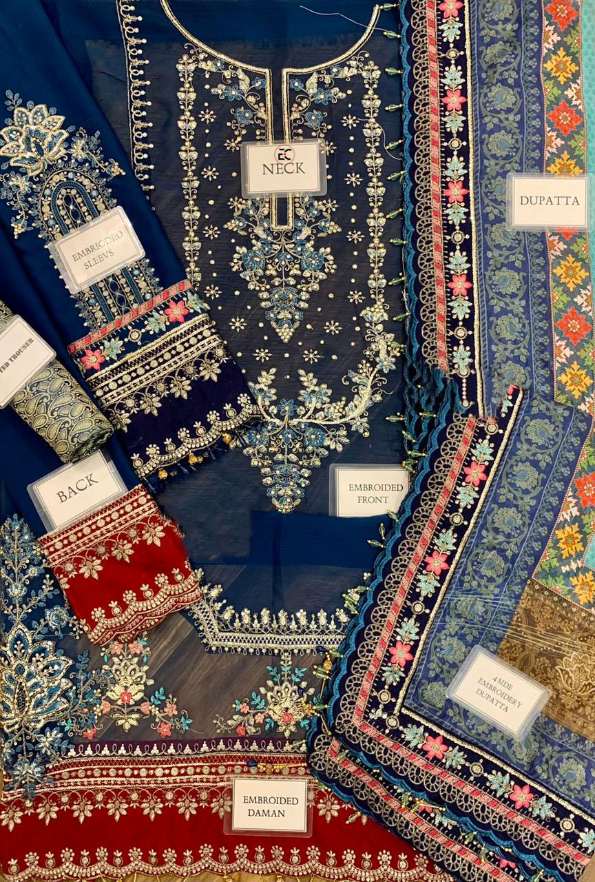 *plain chiffon back with heavy embroidered spengle work back daman boarder*