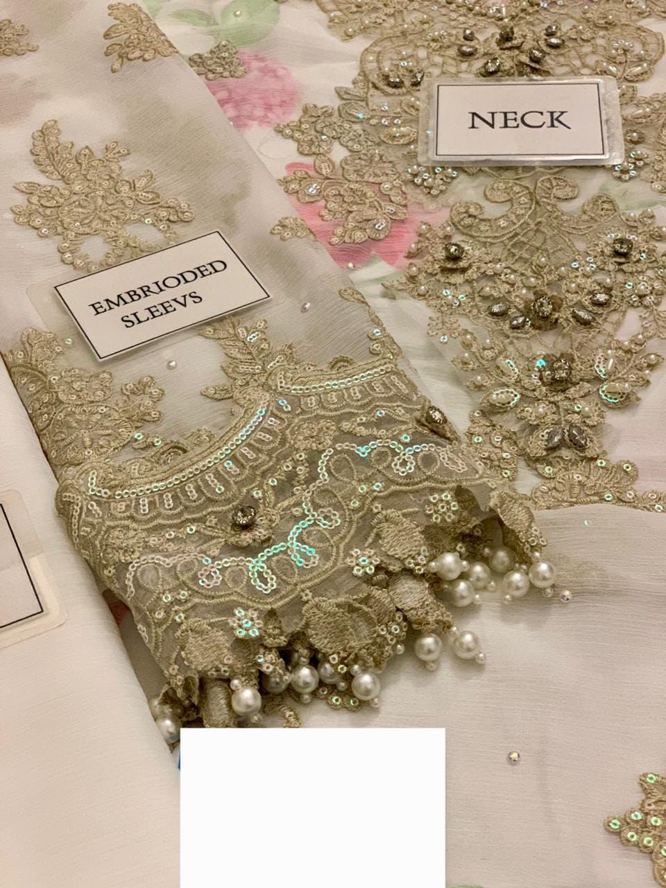 *chiffon fully heavy embroidered spengle work sleeves with fully spray daimand work with fully heavy embroidered spengle work sleeves boarder with hand emblishment adha work with fancy tulses attach*