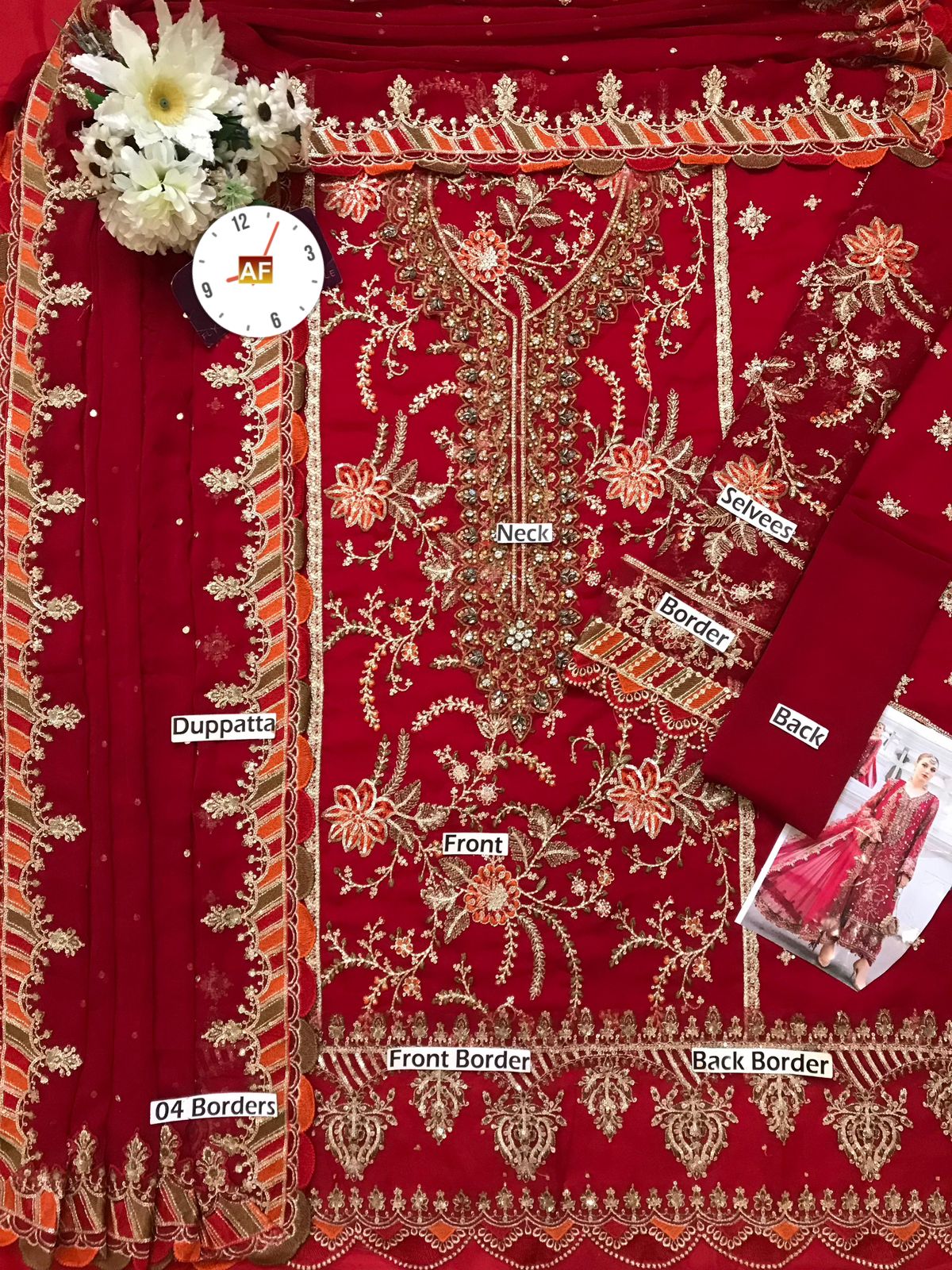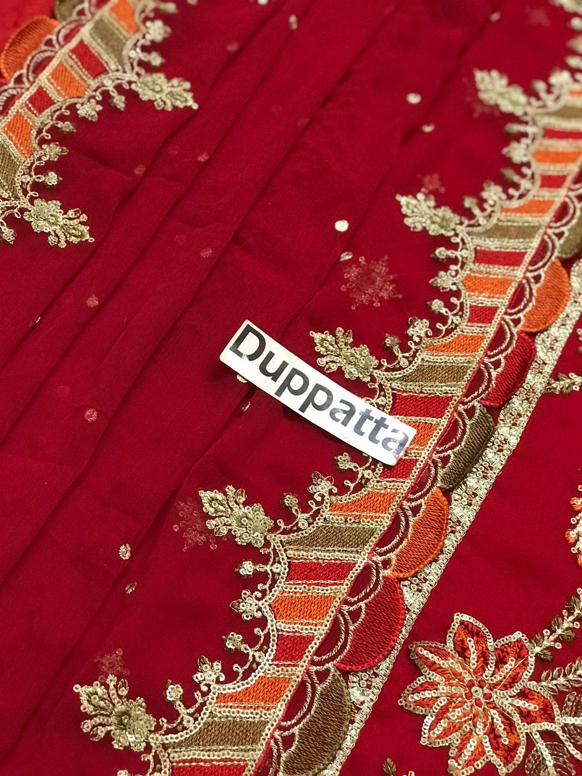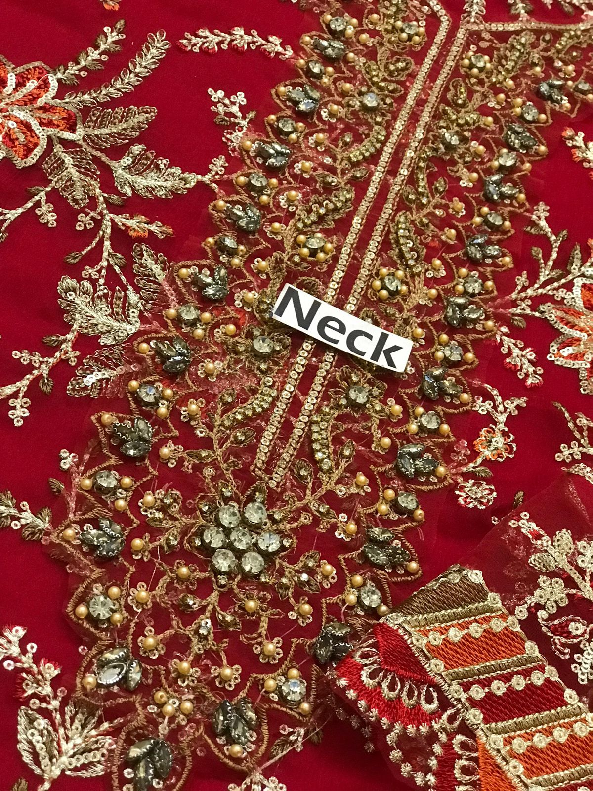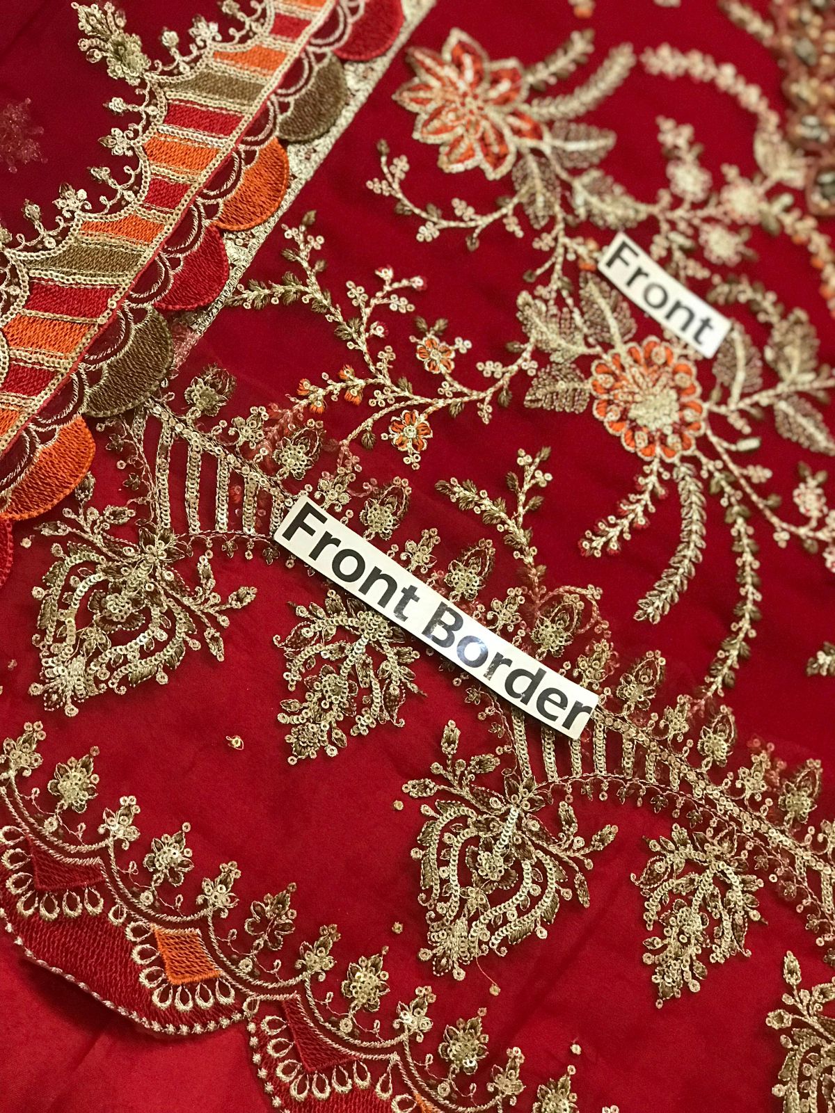 Chiffon Plain Back With Heavy Embroidered Spengle Work Back Daman Border