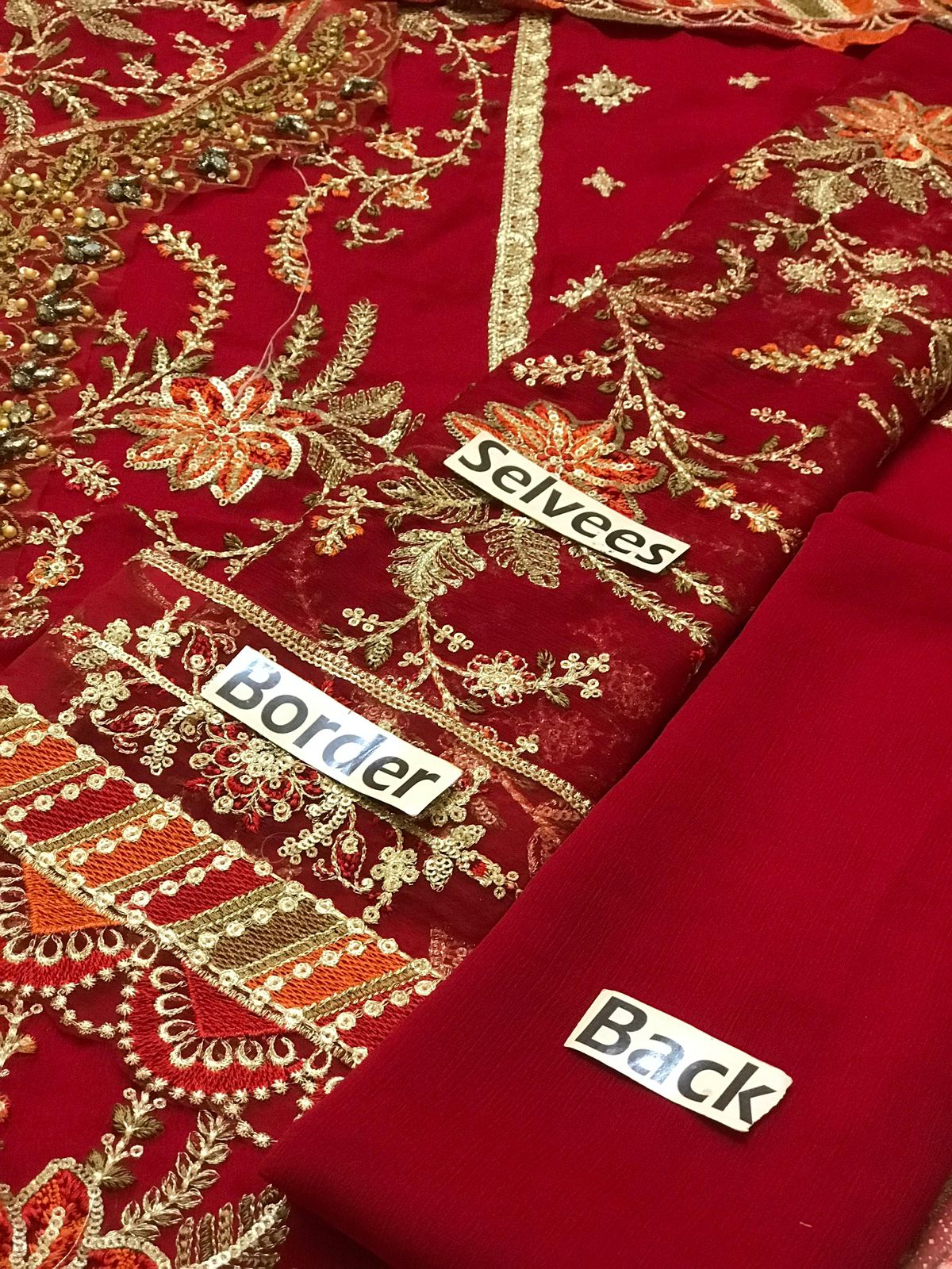 Chiffon Fully Heavy Embroidered Spengle Work Sleeves With Heavy Embroidered Spengle Work Sleeves Border