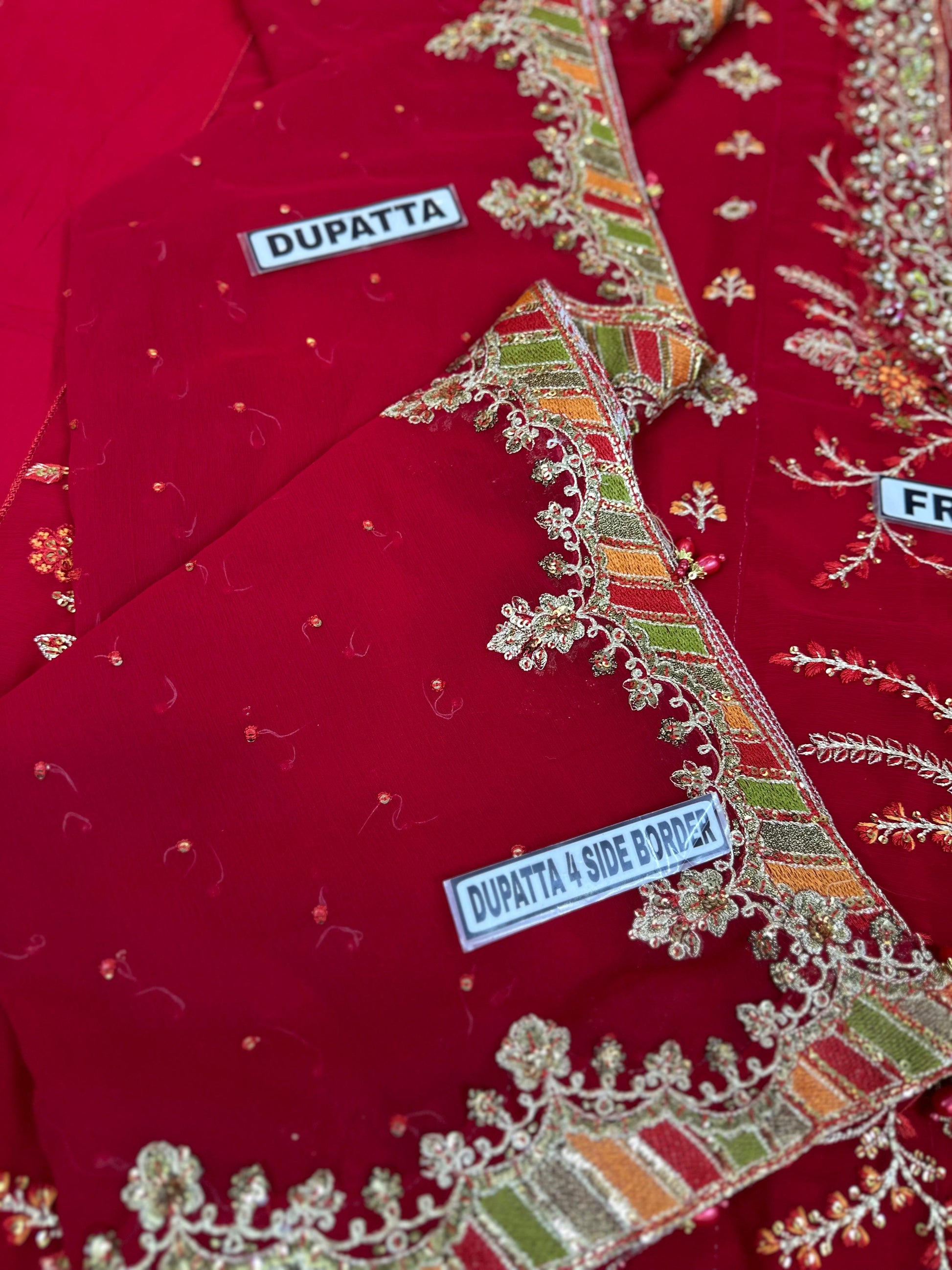 DUPATTA EMBROIDERED *with 4 side embroidered border & Hanging Tassels*