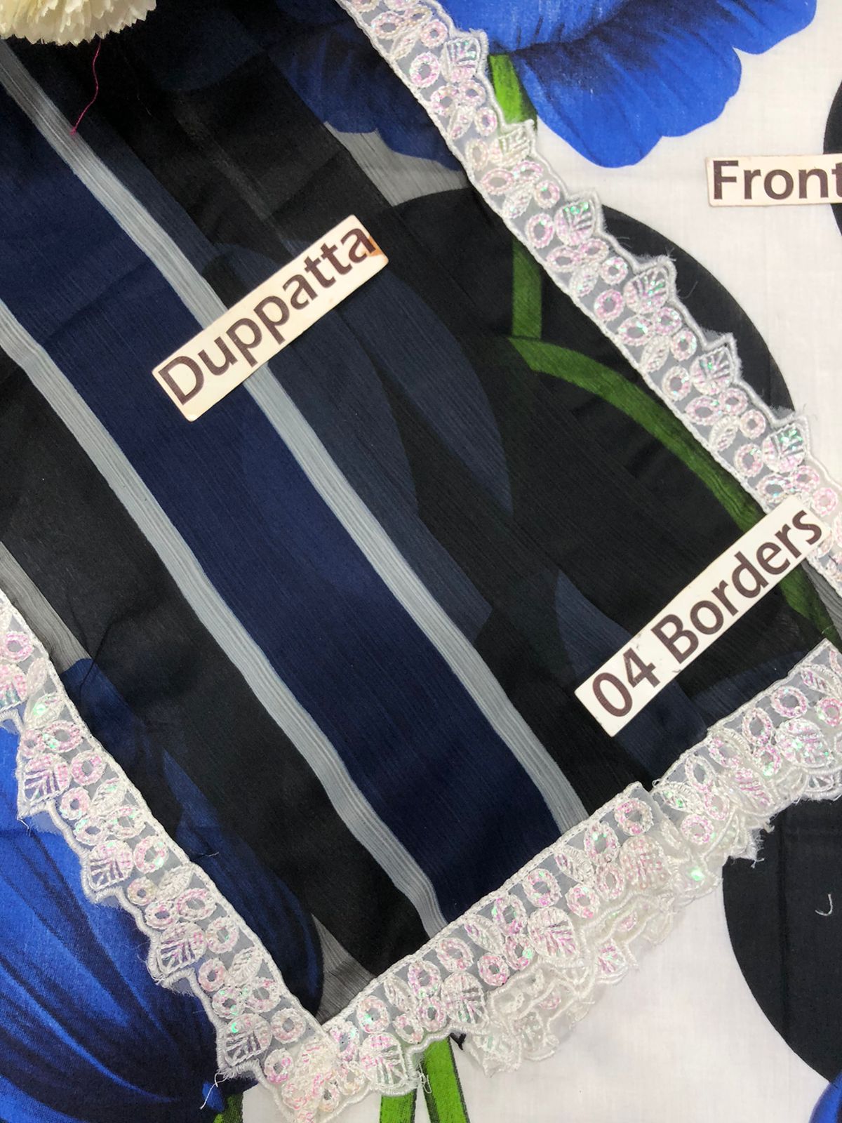 Heavy Embroidered Chiffon Dupatta With 4 Side Cut work Border Dupatta