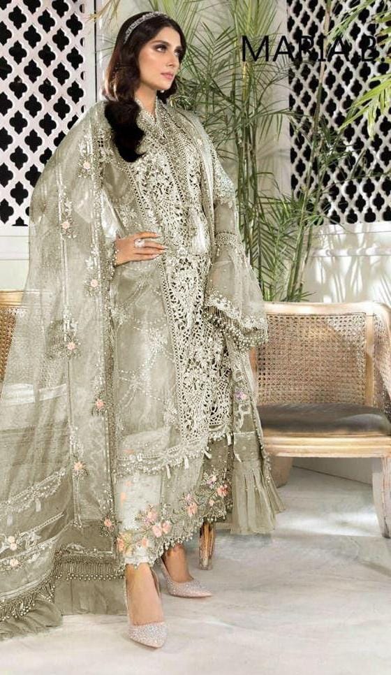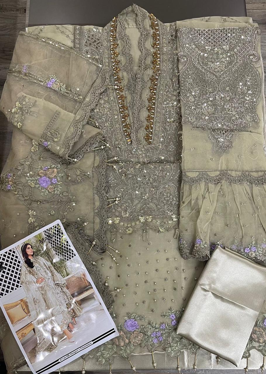 ORGANZA EMBROIDERED SEQUENCE FRONT EMBELISH WITH HANDWORK AND HANGING TUSSLES ON DAMAN