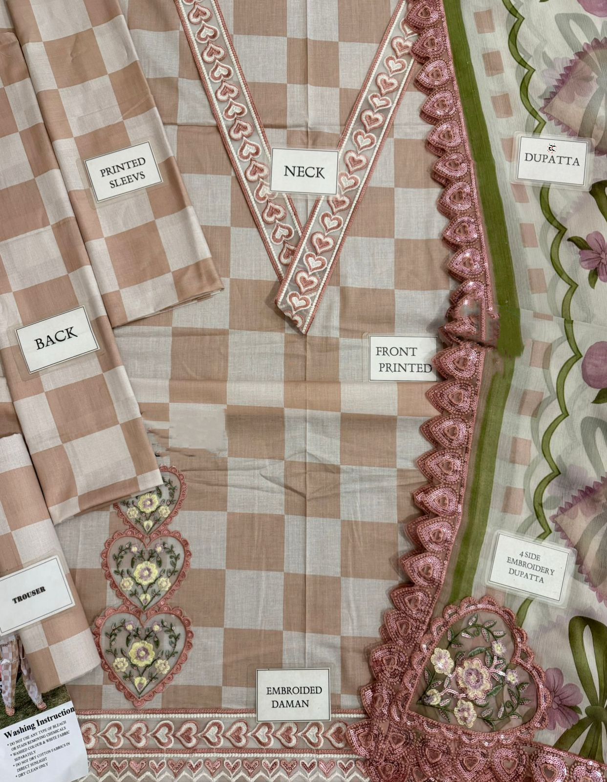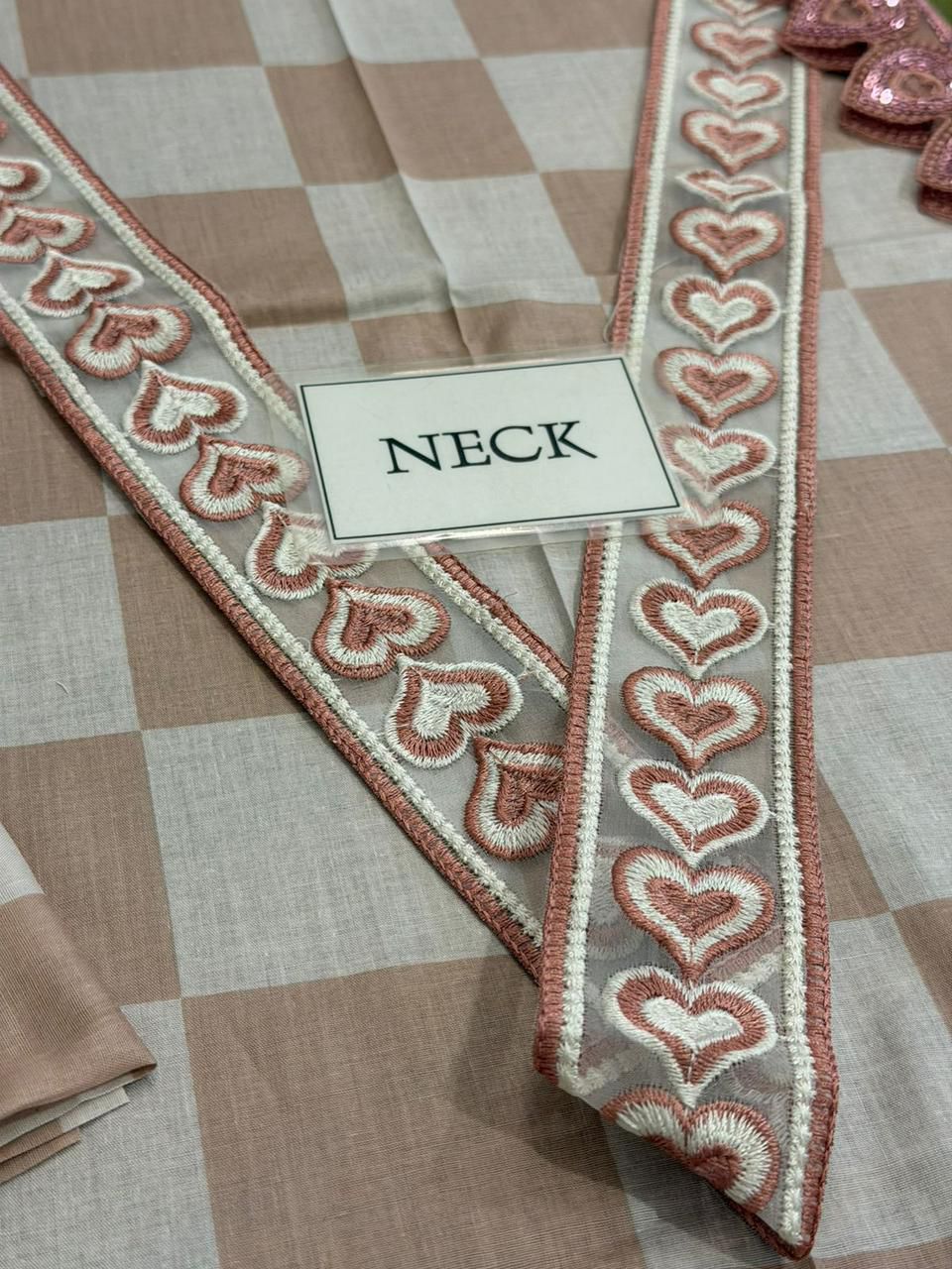 *printed lawn front with heavy embroidered spengle work neckline lace with embroidered spengle work daman bunches*