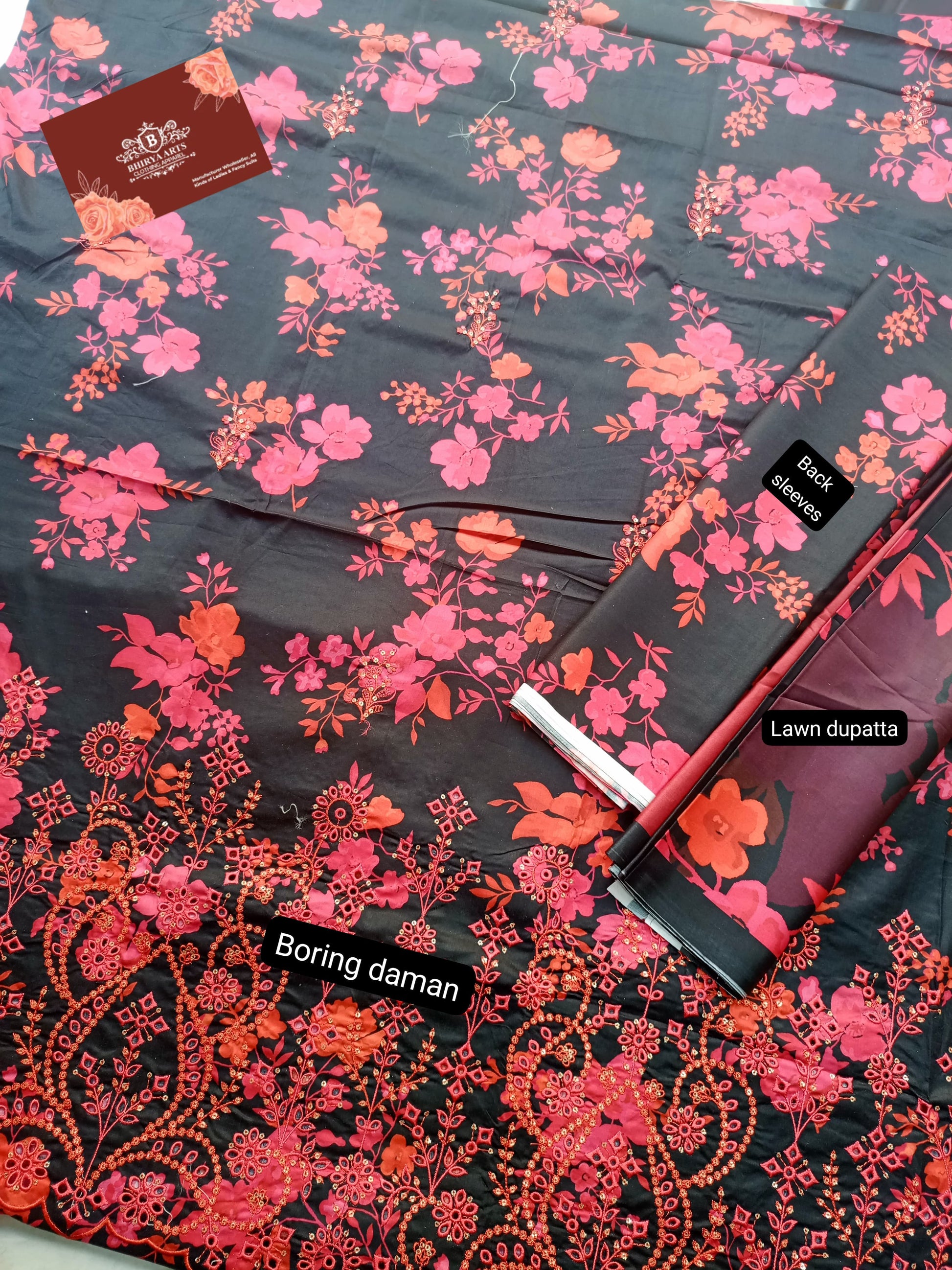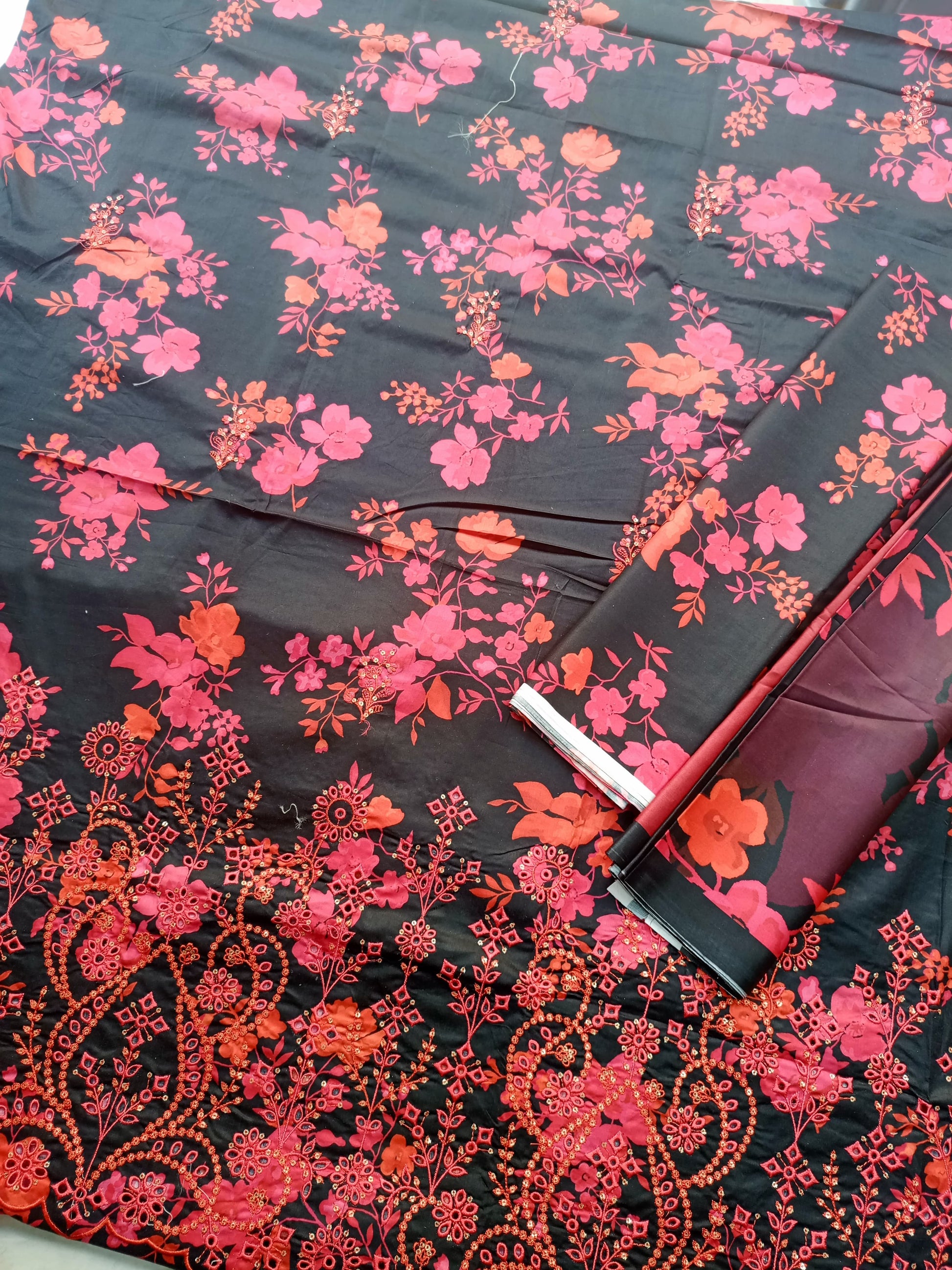 Printed Cotton Full Chickan Kari Front Daman Boring