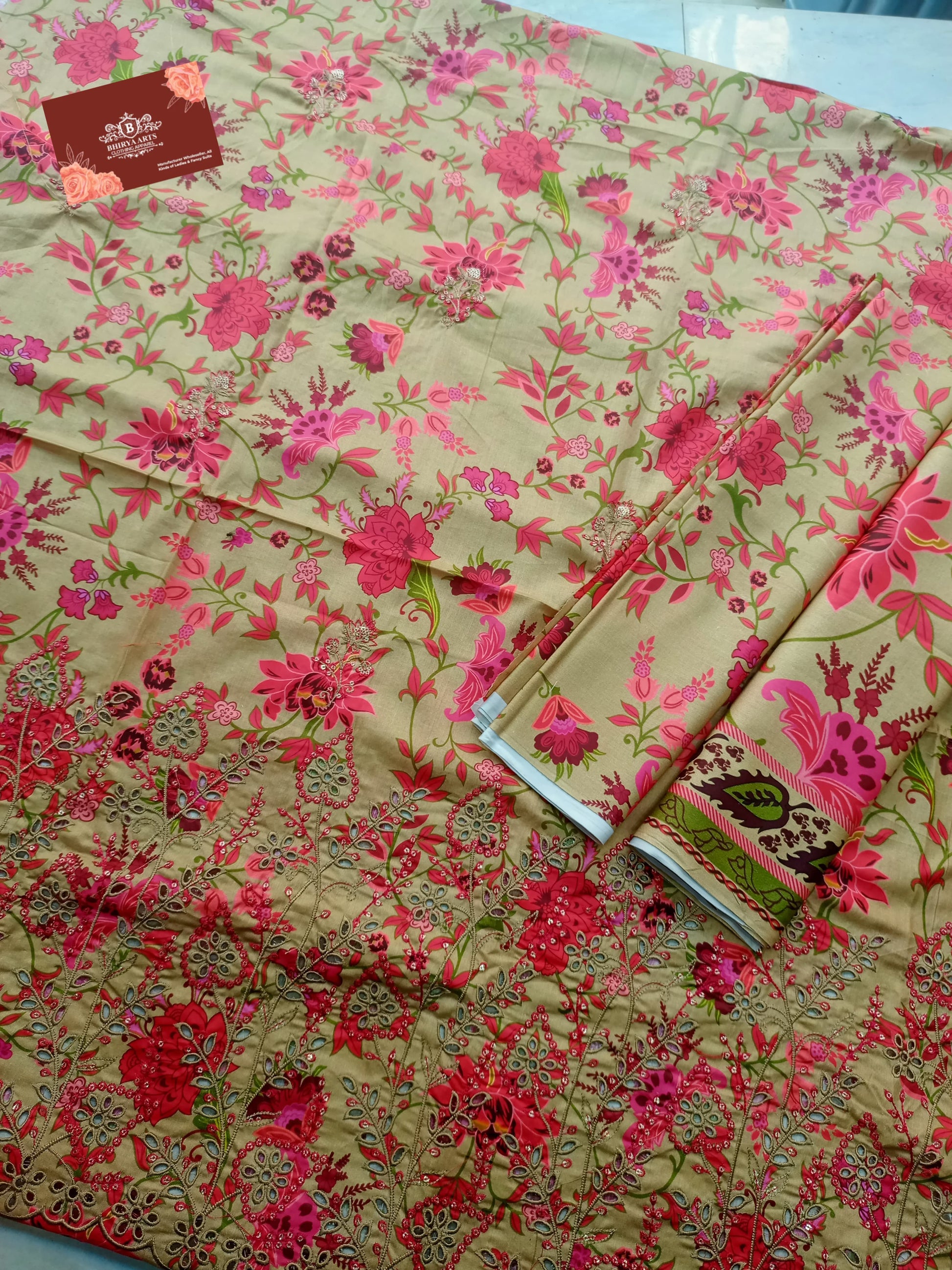 Printed Cotton Full Chickan Kari Front Daman Boring