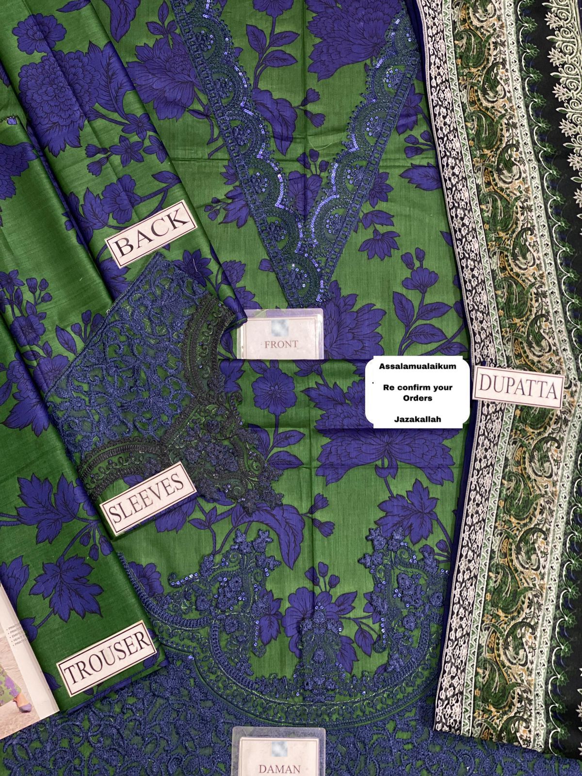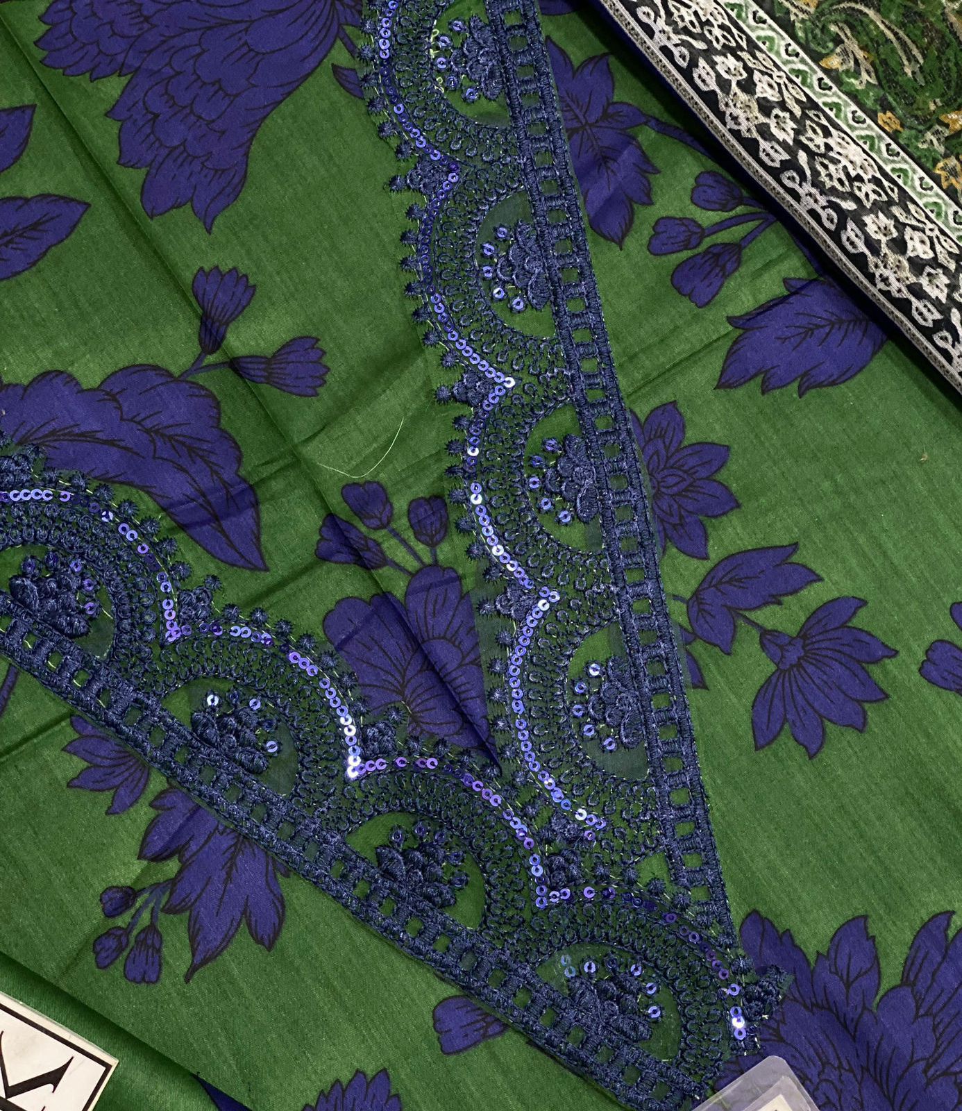 *Printed Lawn Front With Heavy Embroidered Spengle Work Neckline With Heavy Embroidered Spengle Work Daman Border*