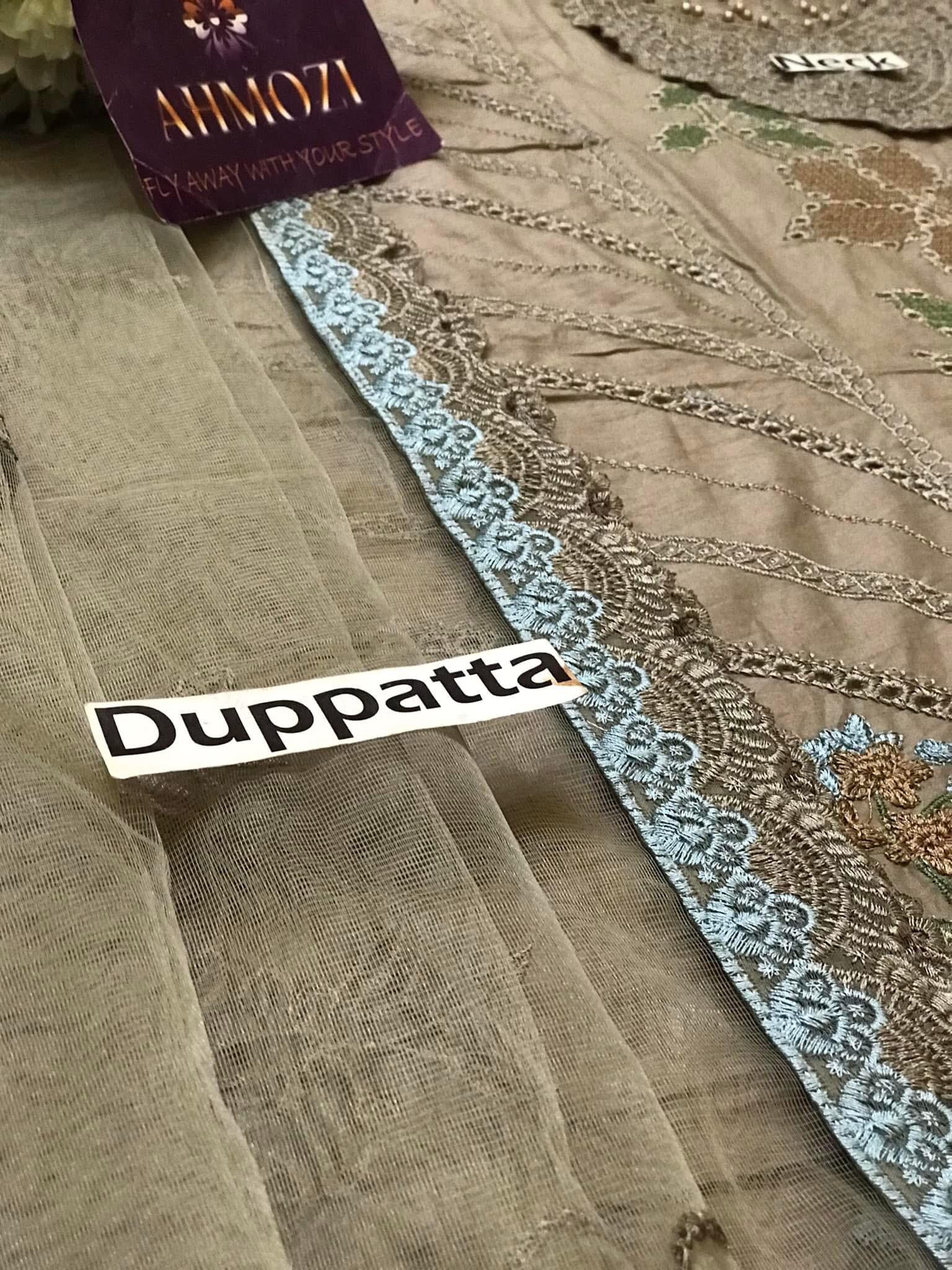 Heavy Embroidered Net Dupatta With 4 Sides Cut Work Borders and 2 Side Heavy Pallu Embroidered