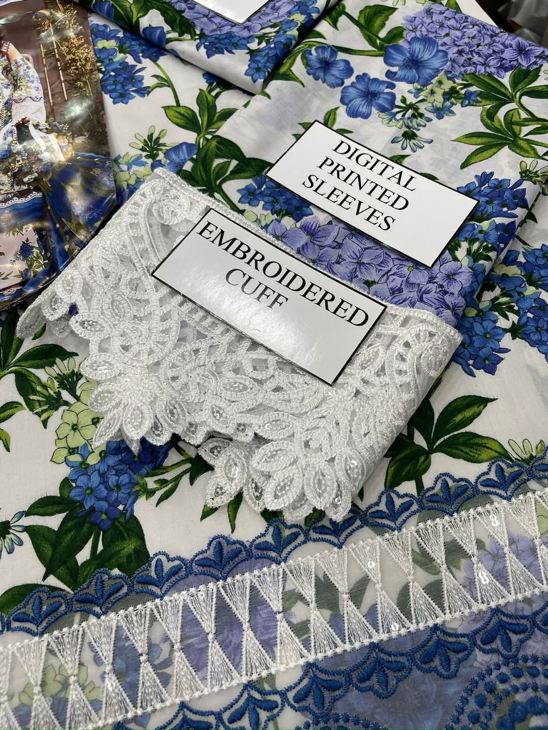Printed lawn sleeves with heavy embroidered spengle work sleeves border