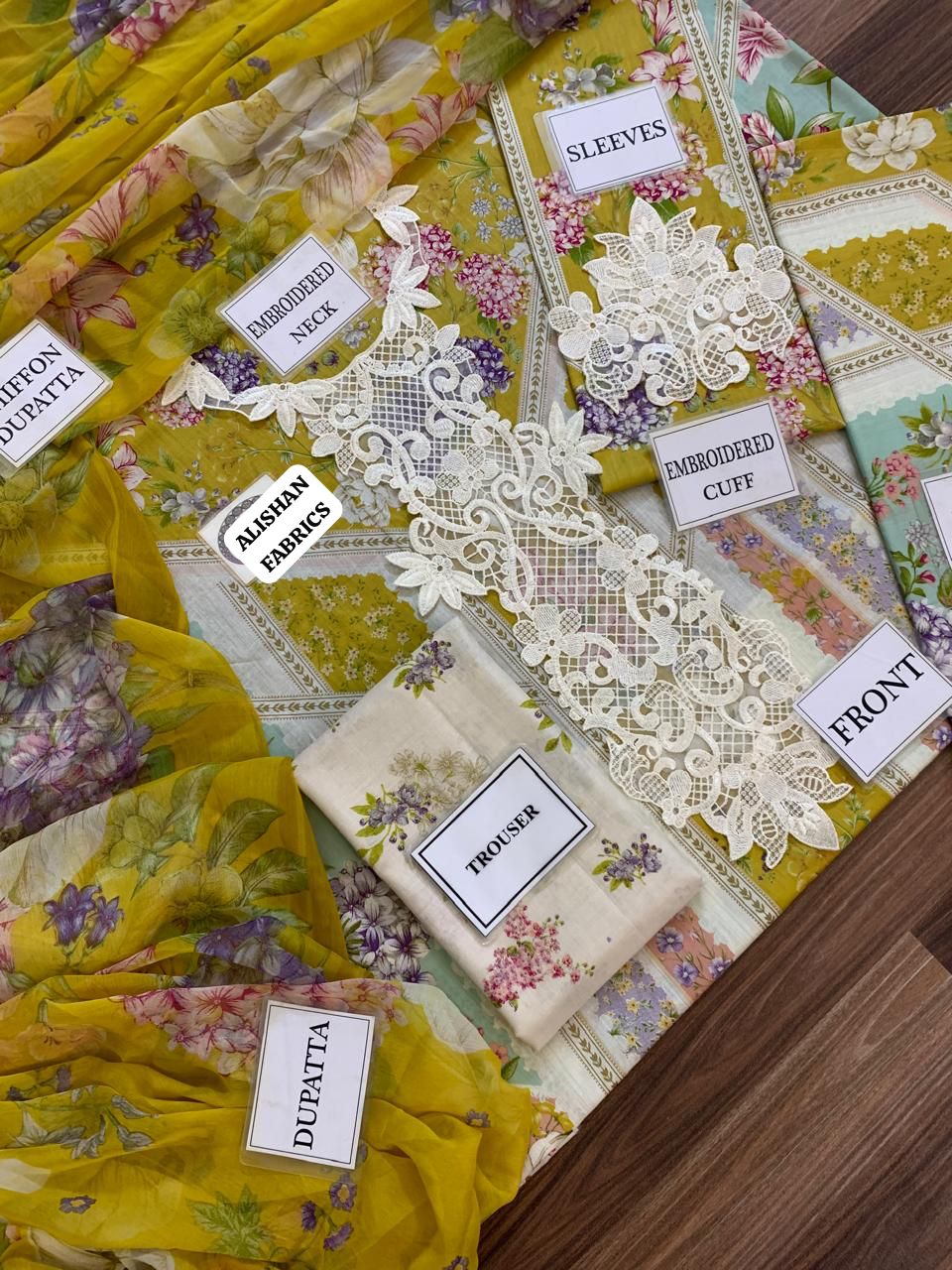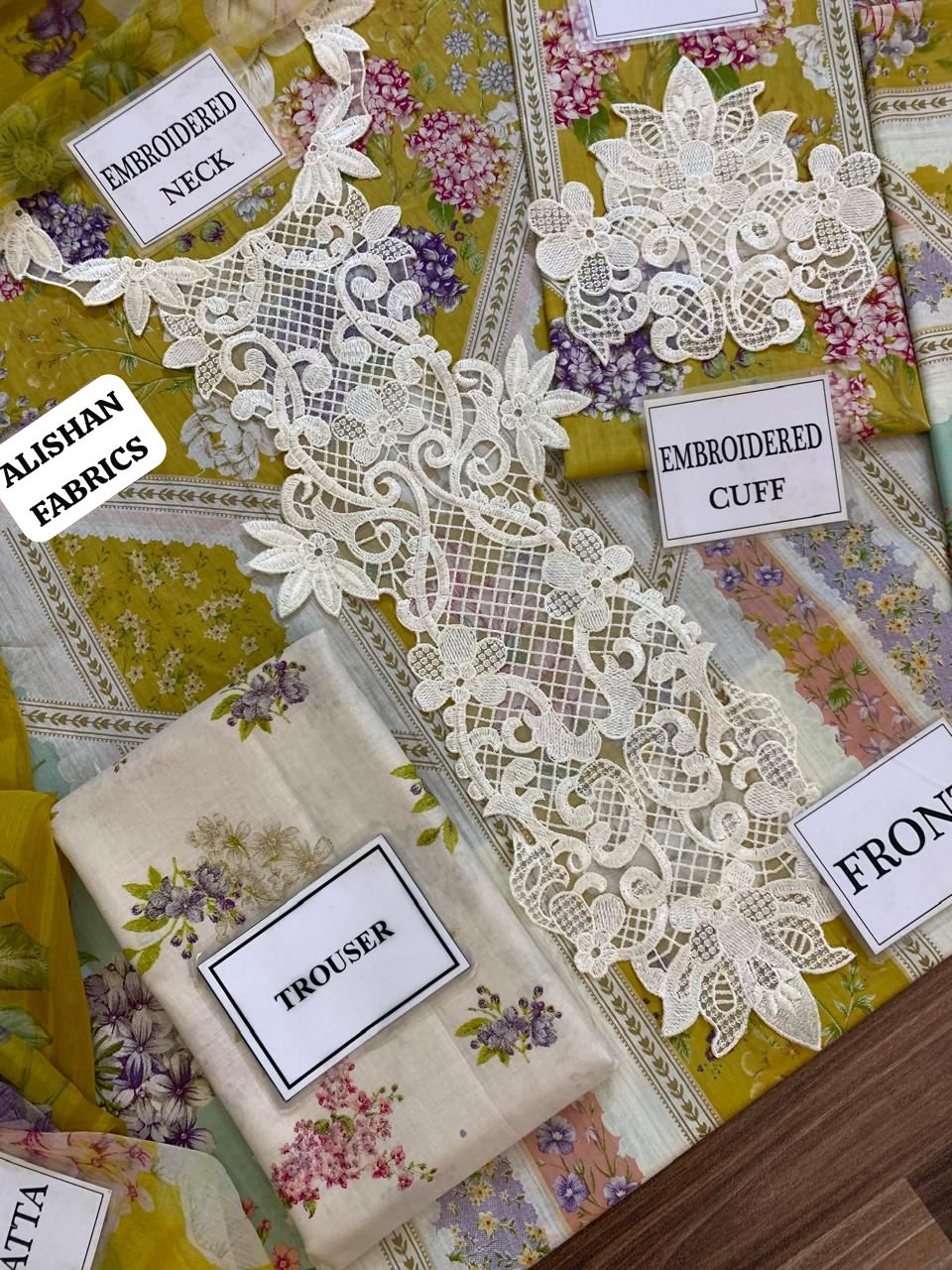 *Printed Lawn Sleeves With Heavy Embroidered Spengle Work Sleeves patched*