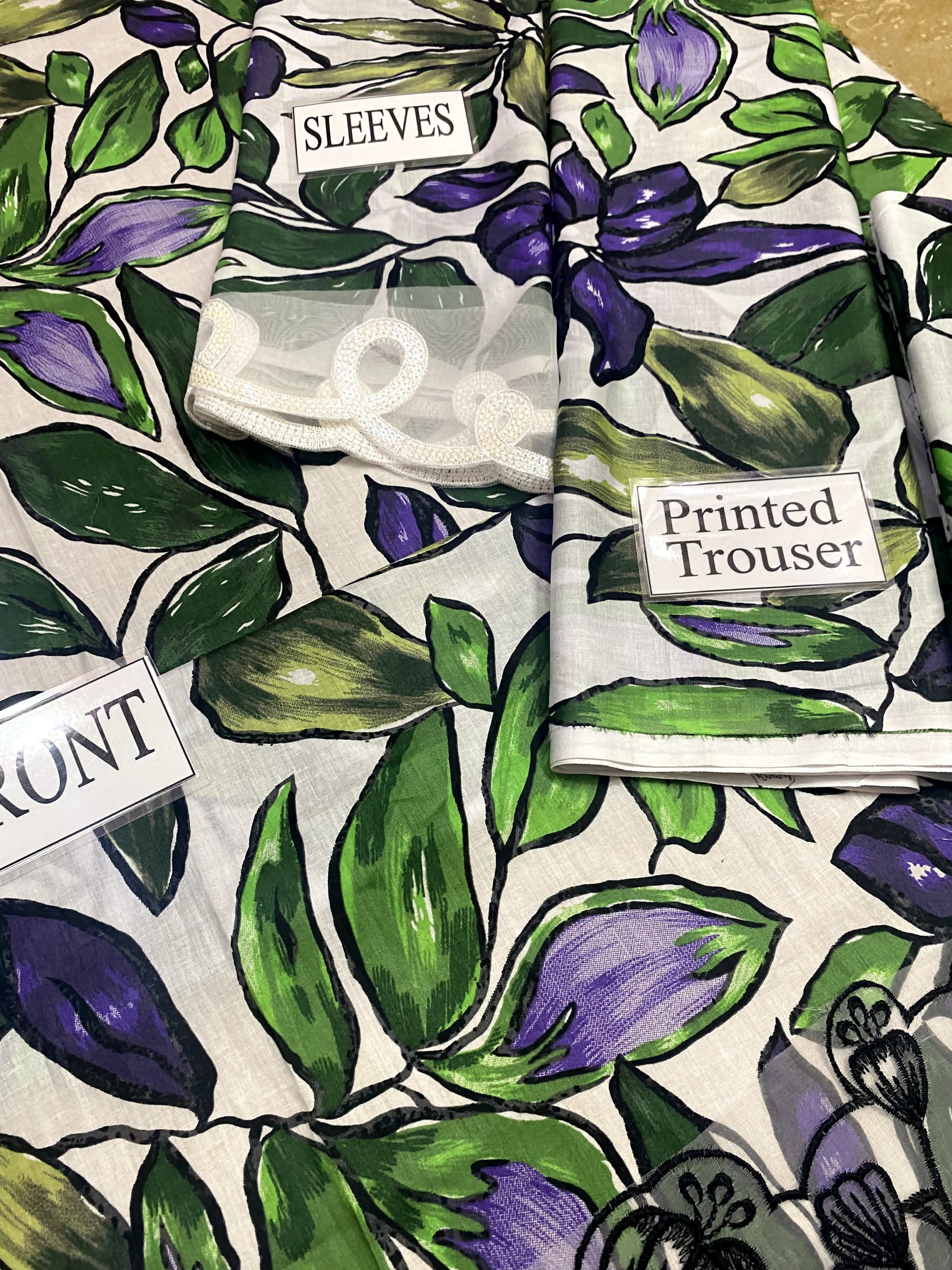 *Printed Lawn Front With Heavy Embroidered Spengle Work Daman Border*