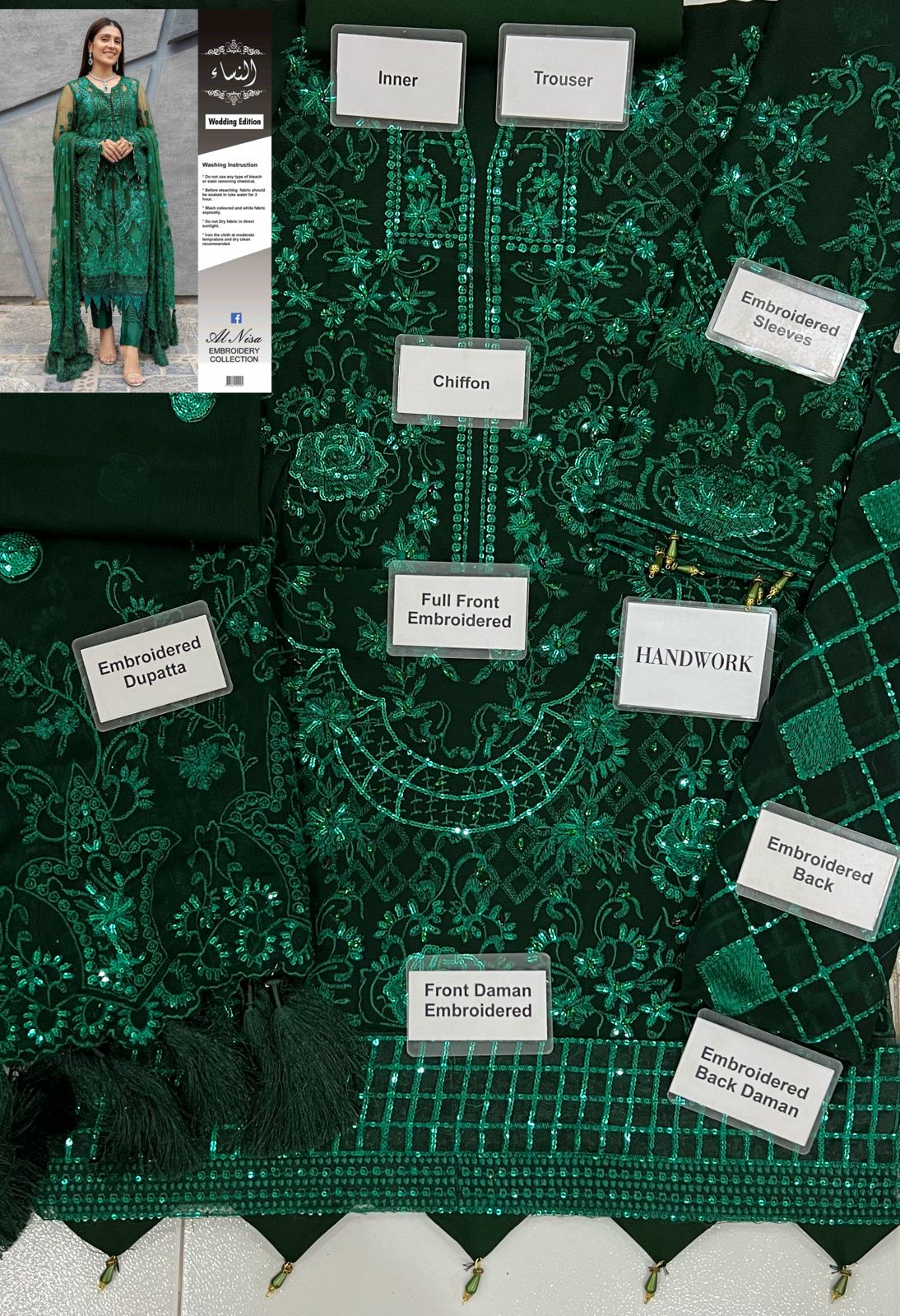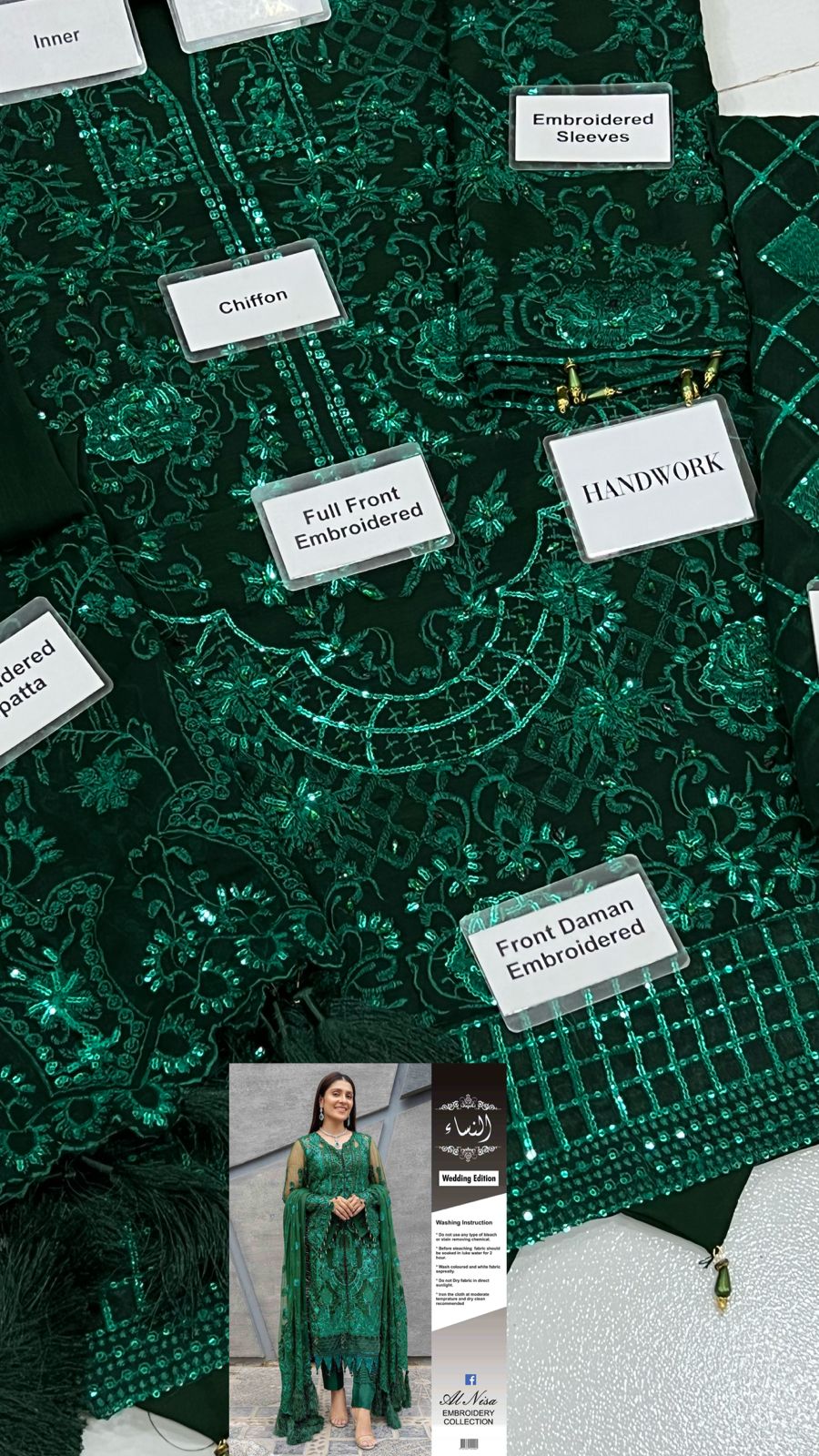 Full Embroidered Sequence Work Chiffon Front With Handwork Stones