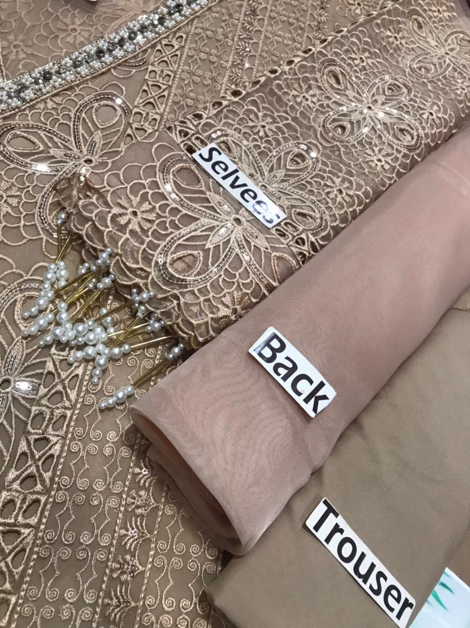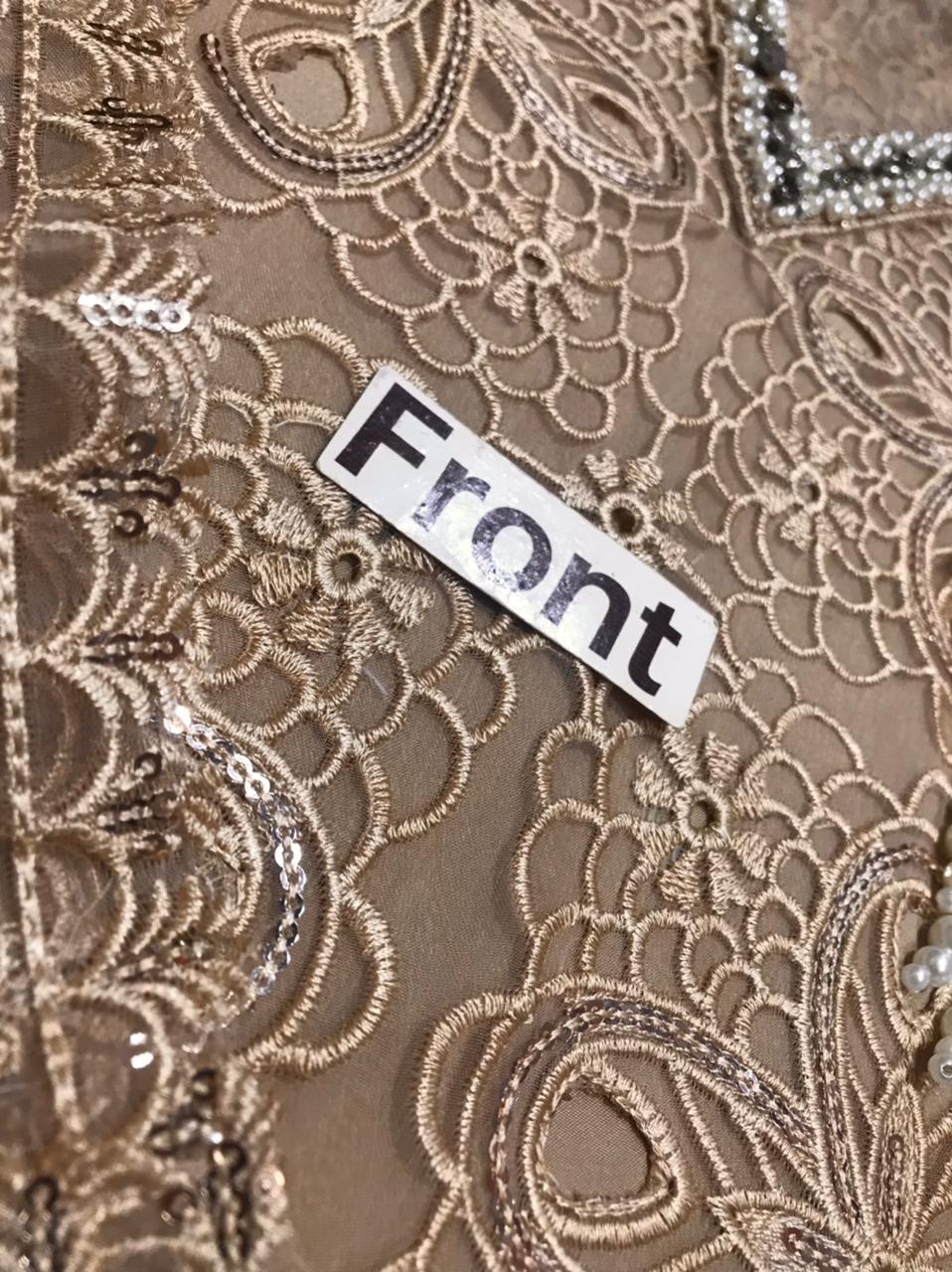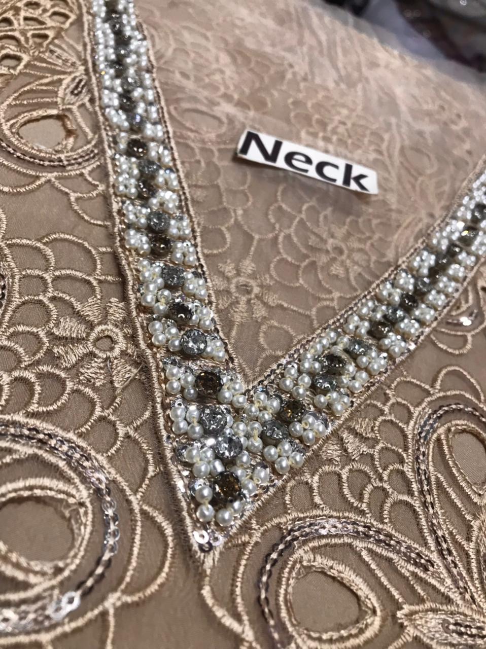 Organza Embroidered Front with Fully adda work Neck and Organza Daman given separately