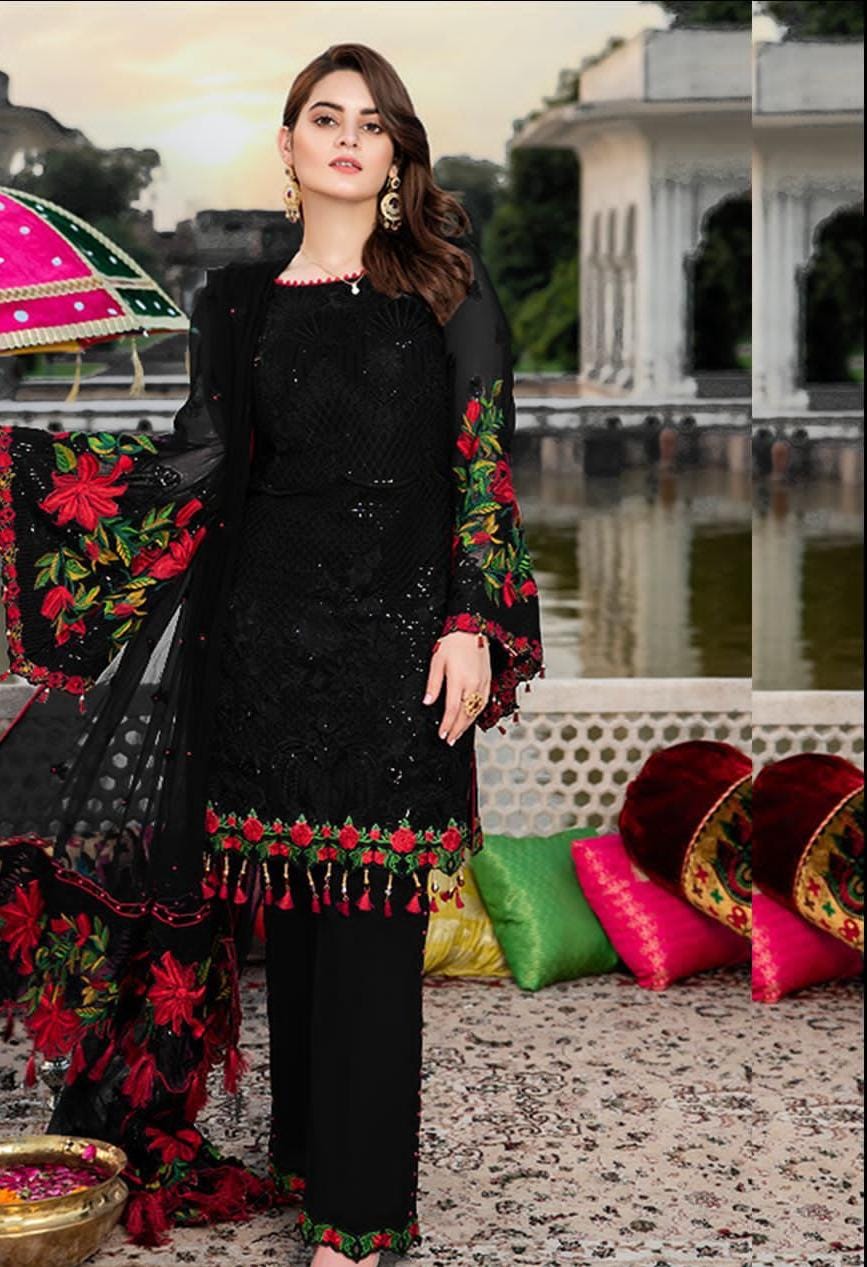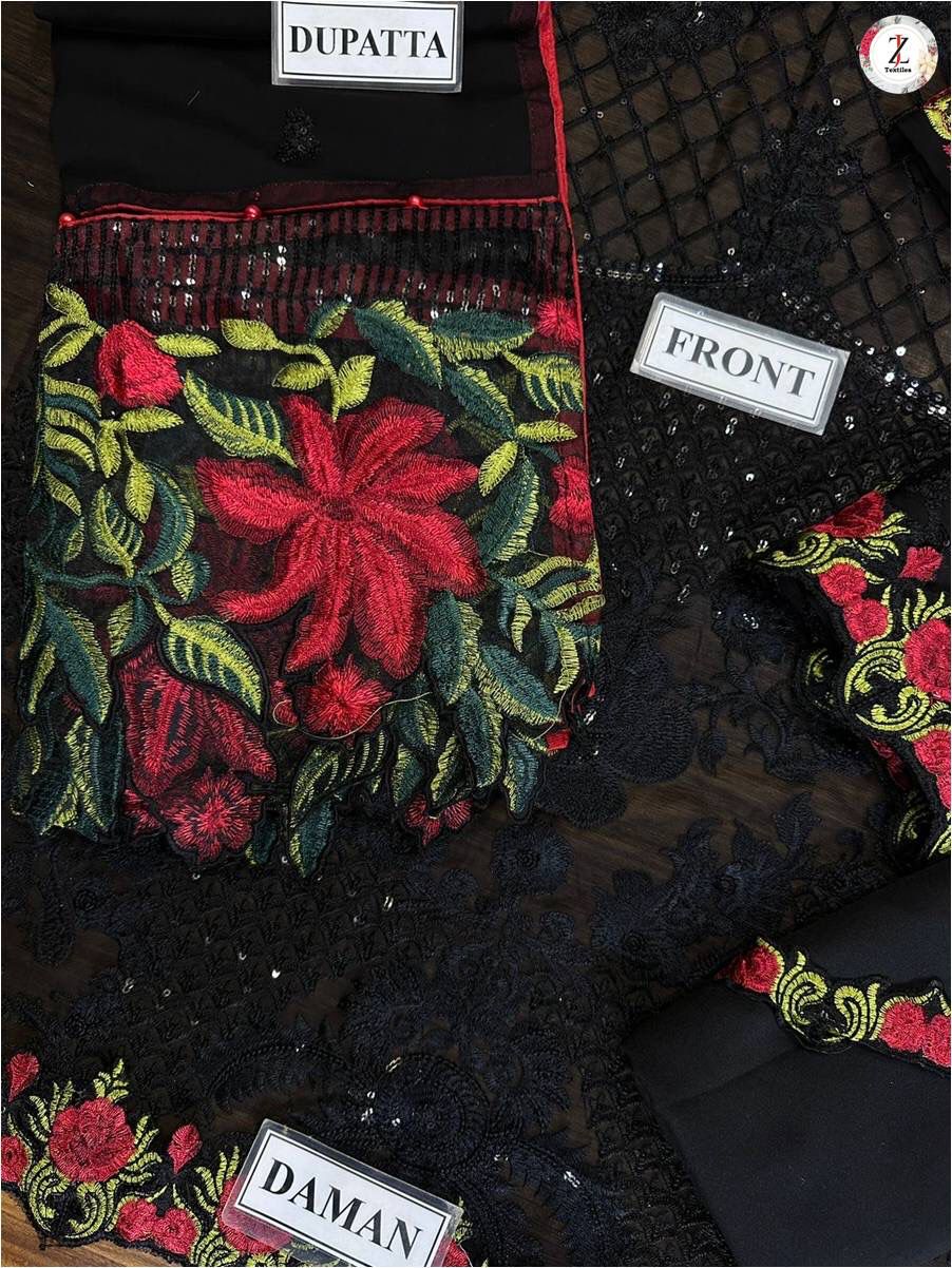 •Sequence Embroidered Semi Pure Chiffon Back