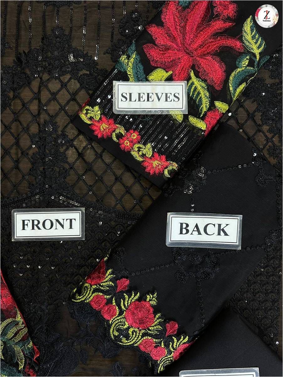 •Sequence Embroidered Semi Pure Chiffon Sleeves