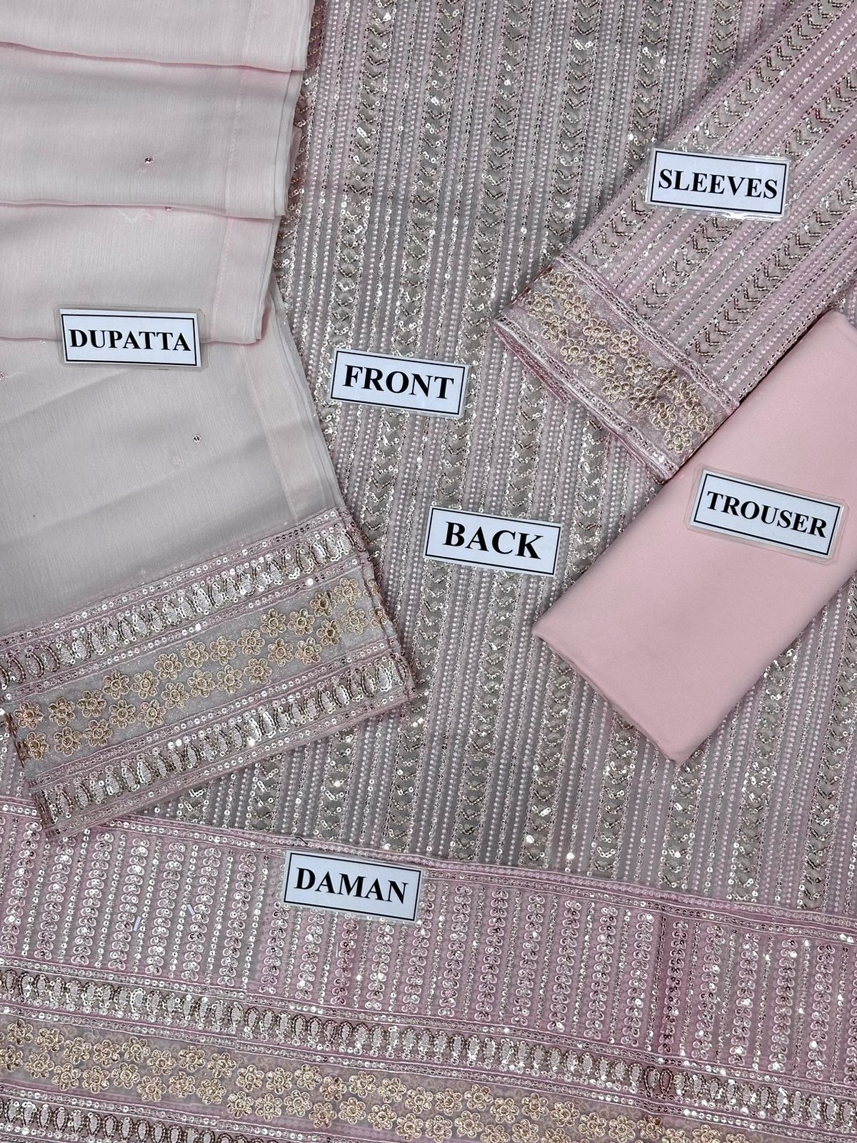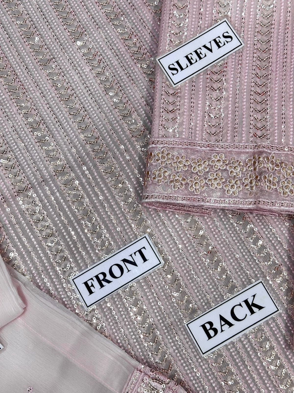 Semi Pure Chiffon Full Sequence Embroidered Back