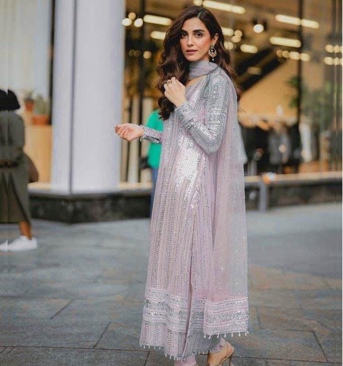 Semi Pure Chiffon Full Sequence Embroidered Front