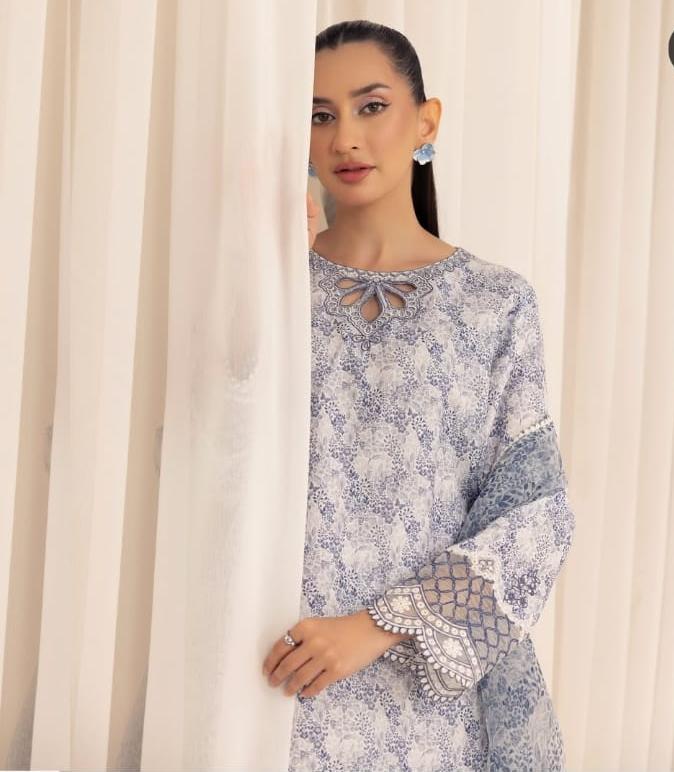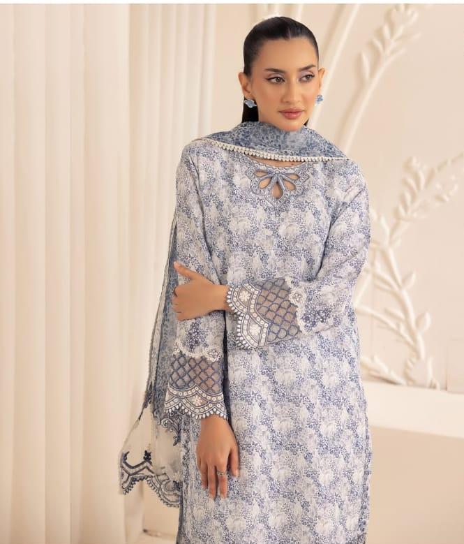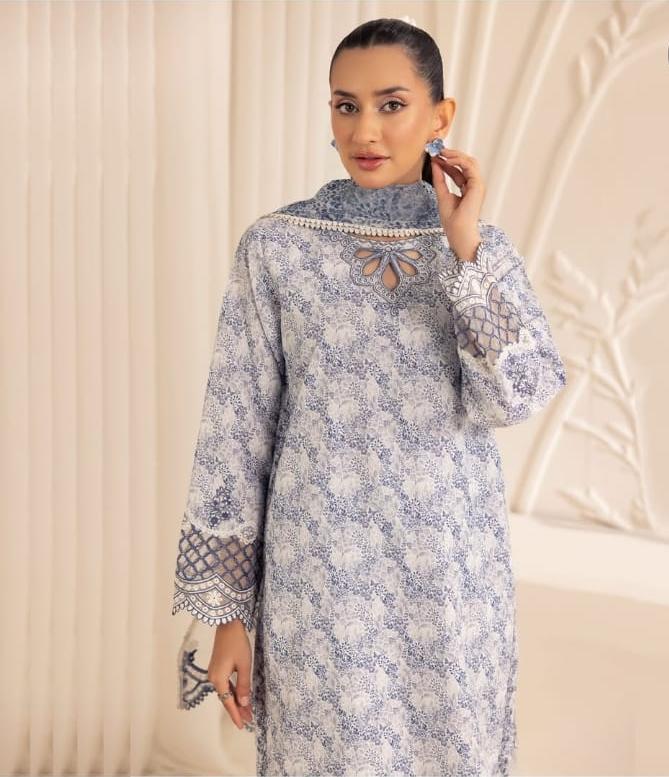 Digital Printed Lawn Front With Embroidered Neck Patch