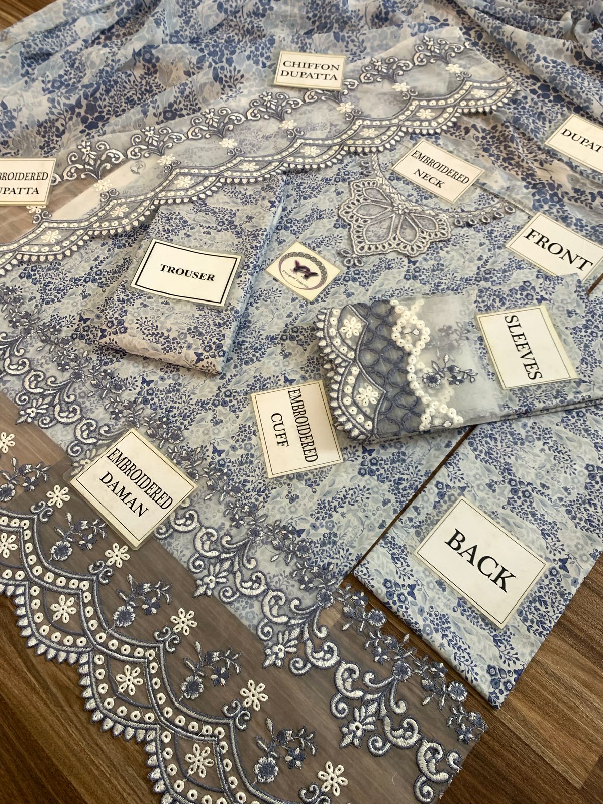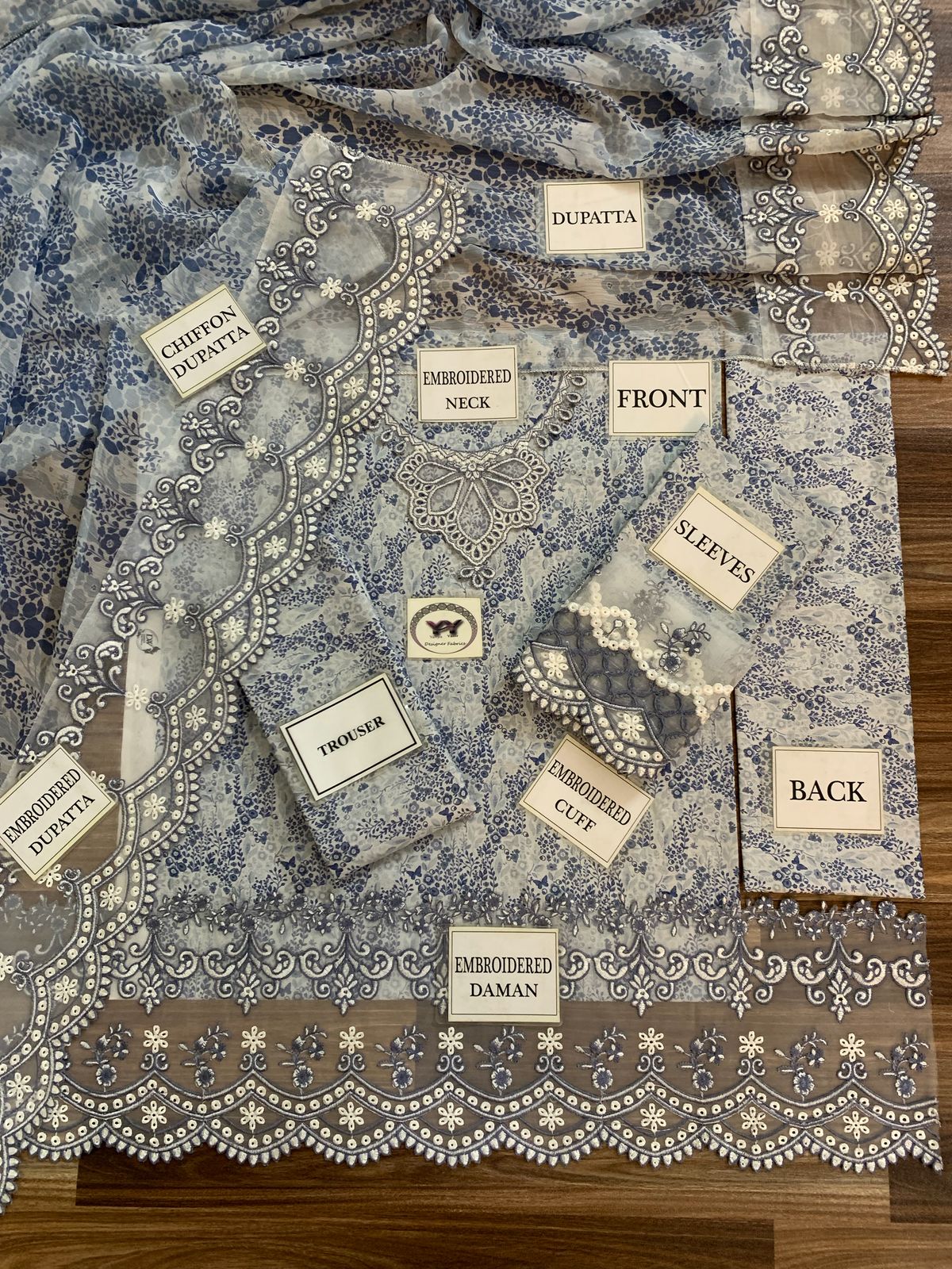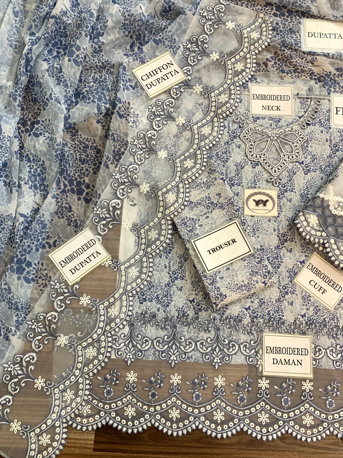 Digital Printed Chiffon Dupatta With Heavy Embroidered Attached Pallu