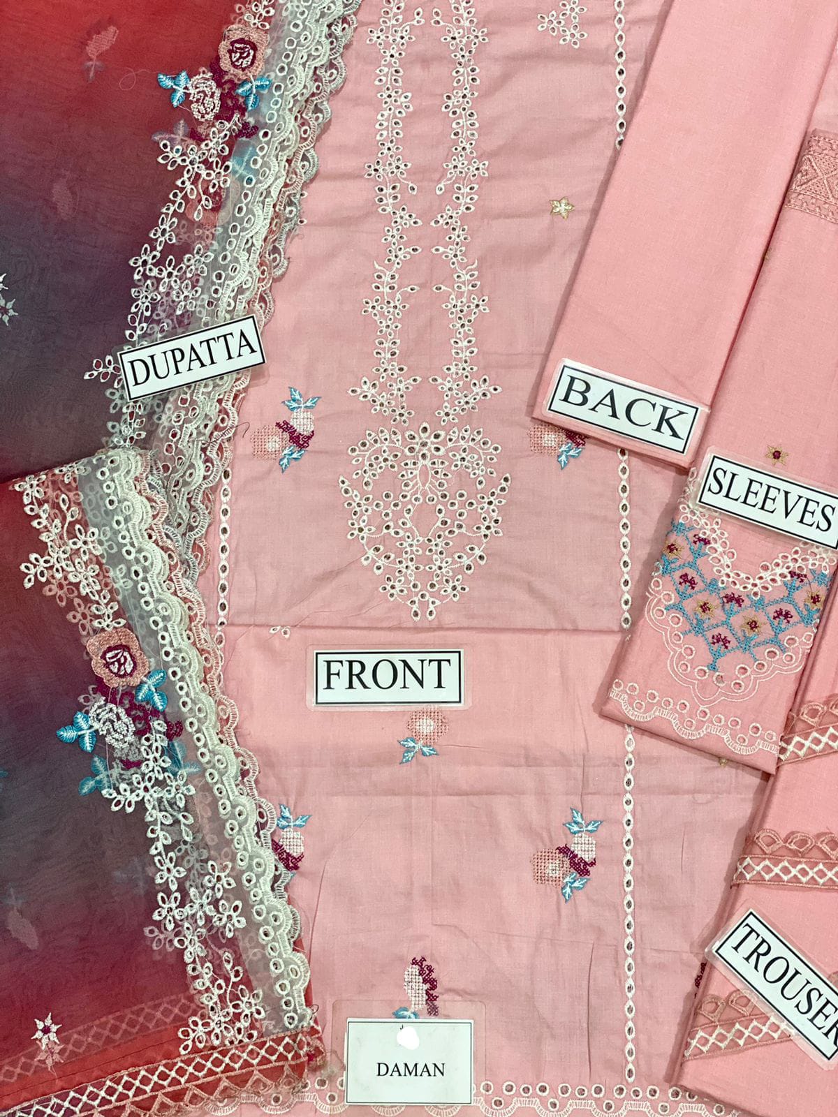 •Chikankari Heavy Embroidered Cotton Front with emb attach daman