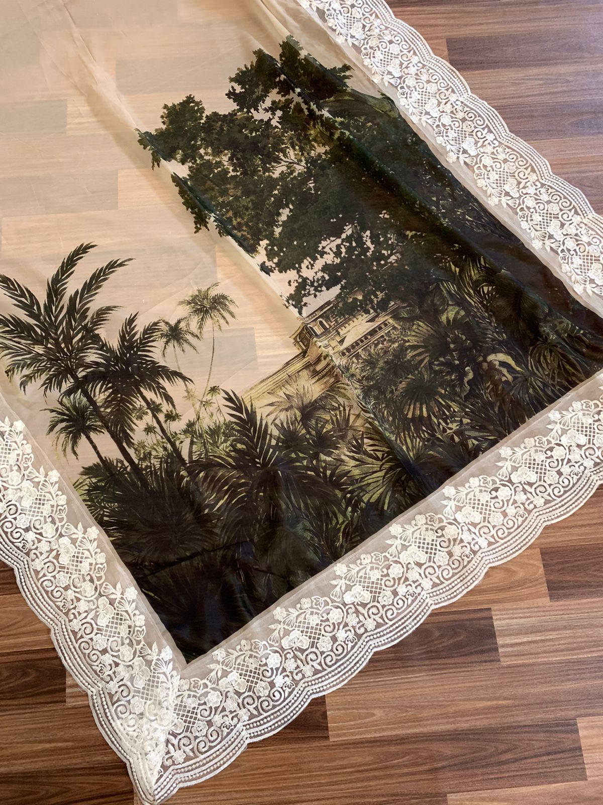 SILK DIGITAL PRINTED DUPATTA WITH 4 SIDE HEAVY EMBROIDERED BORDERS ATTACHED