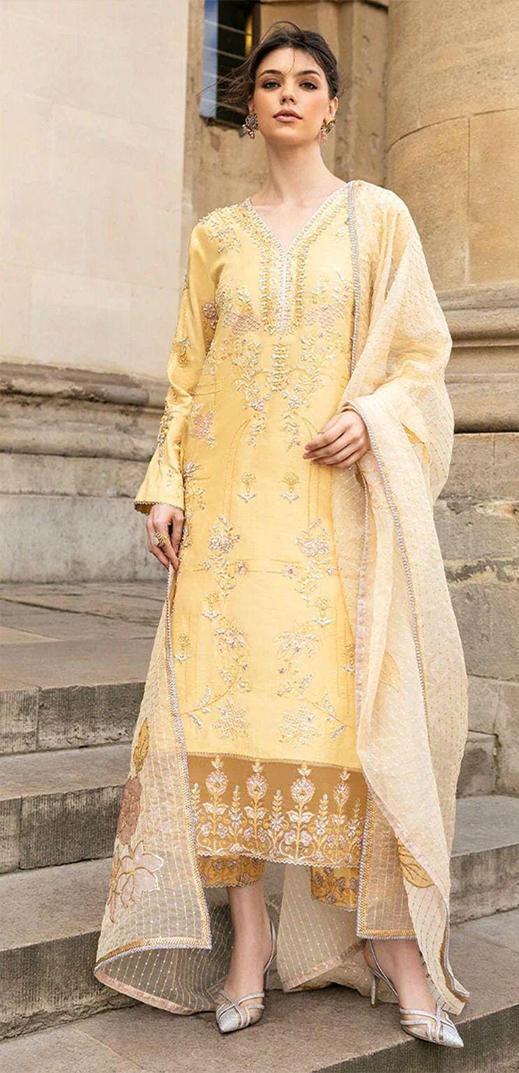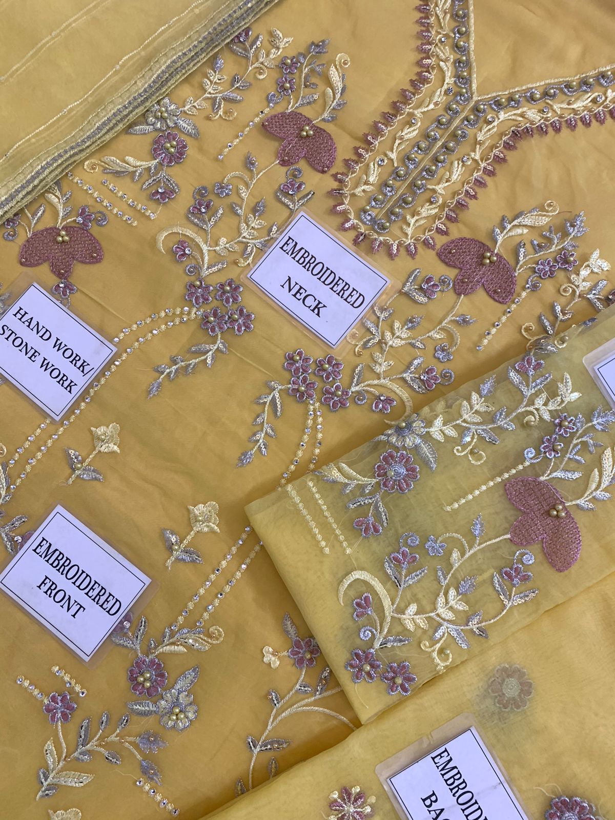 HEAVY EMBROIDERED ORGANZA FRONT WITH EMBROIDERED NECK EMBELLISHED WITH STONE WORK ALONG WITH EMBROIDERED DAMAN PATCH