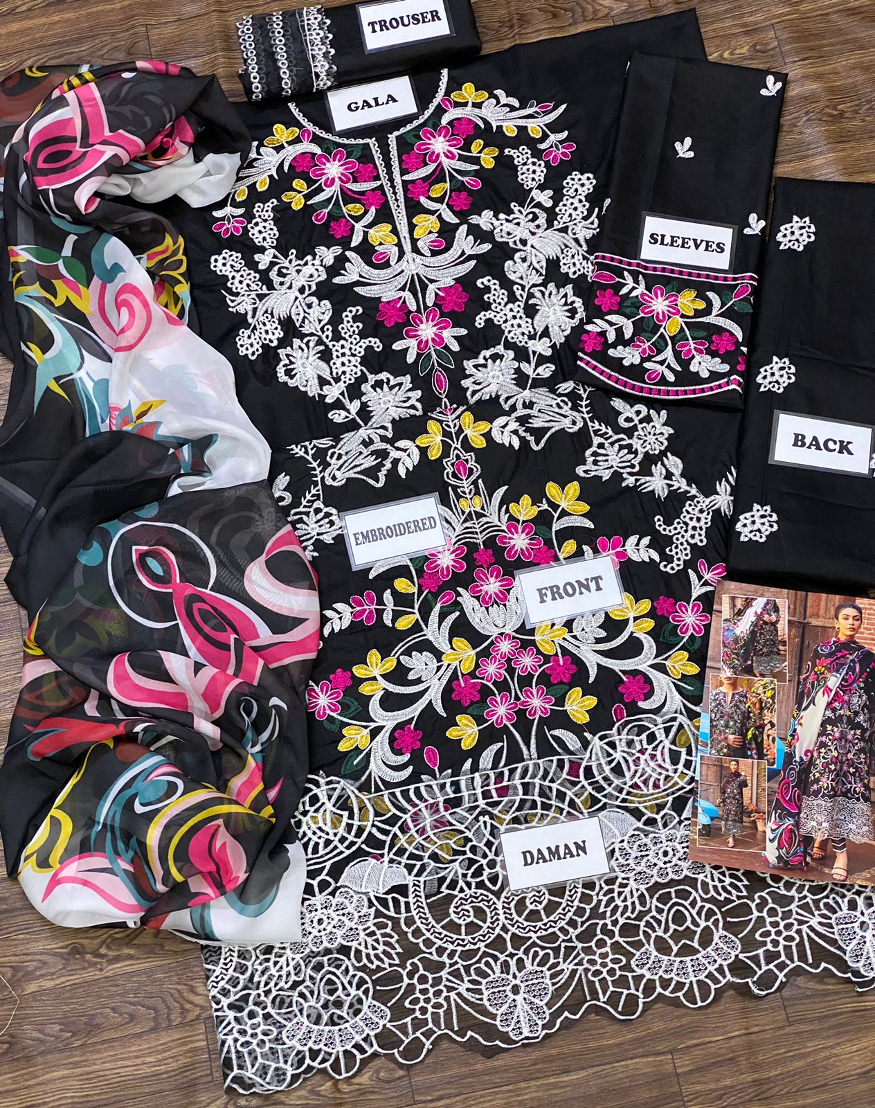 Fully Embroiderrd Sleeves with Thread Work With Border