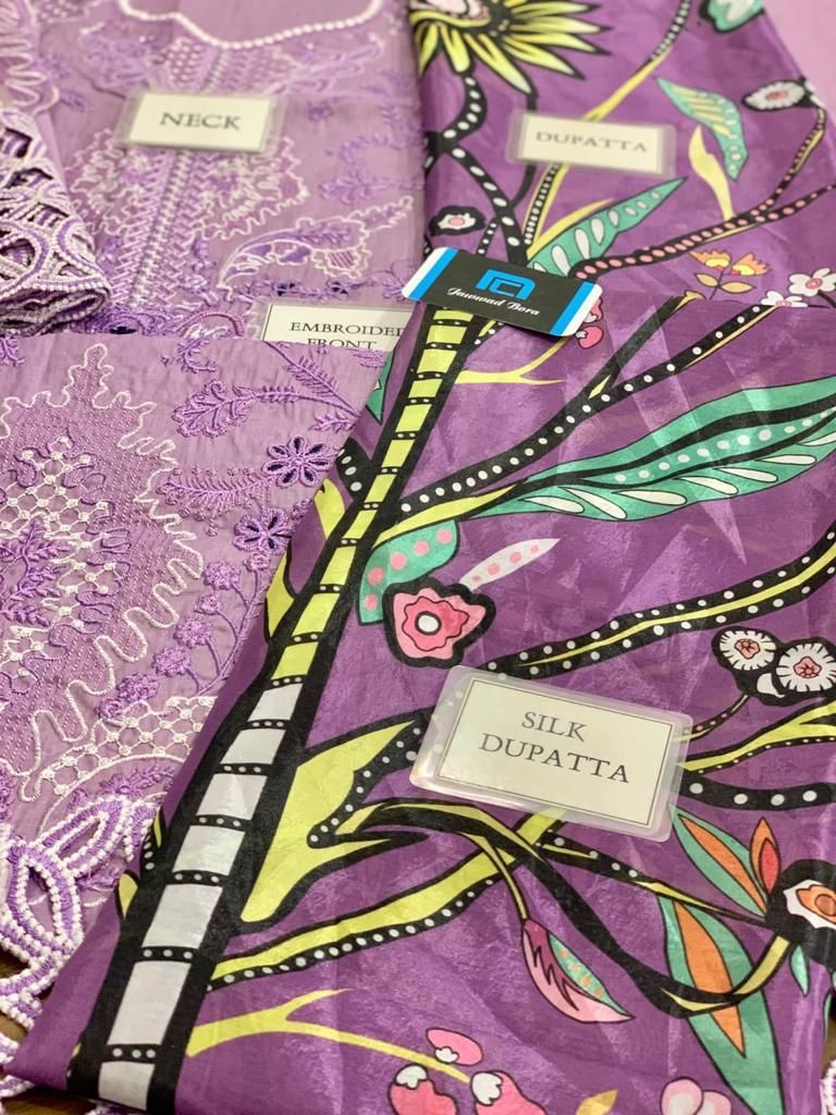 plain lawn back with heavy embroidered back daman boarder with cut work with heavy embroidered back bunch