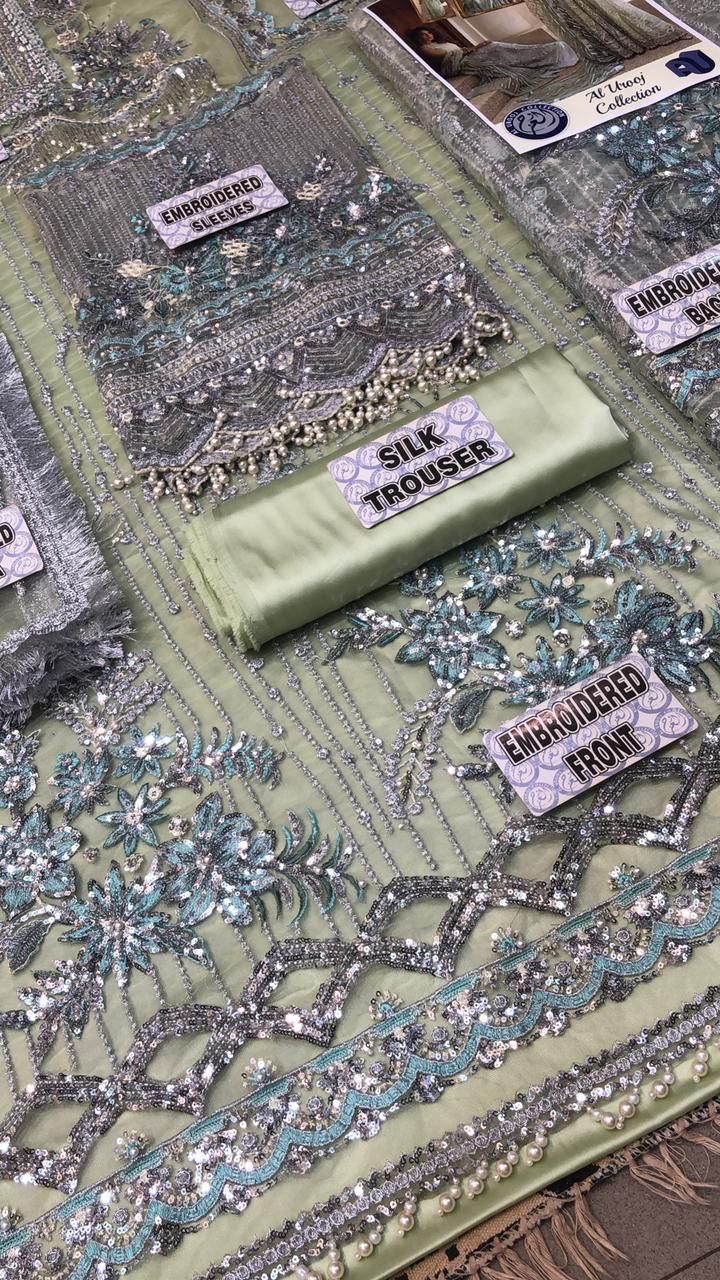 *Front* fully embroidery having Sequence work on it with 🤚 work stones punching Moti & Pearls atteched