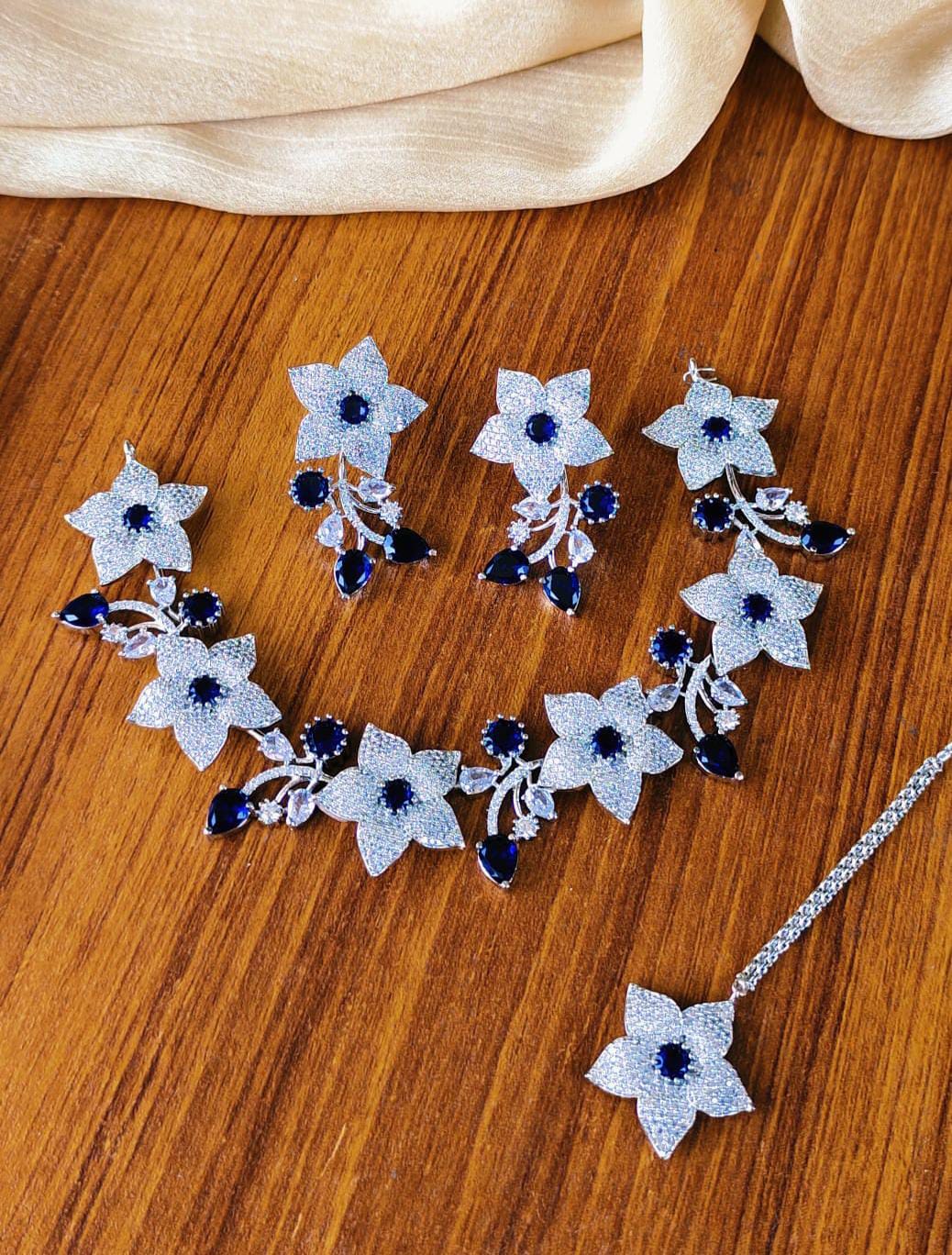 *Premium Quality AD Micro Zarcon³D Style Necklace Set With Teeka✨ 🎀*