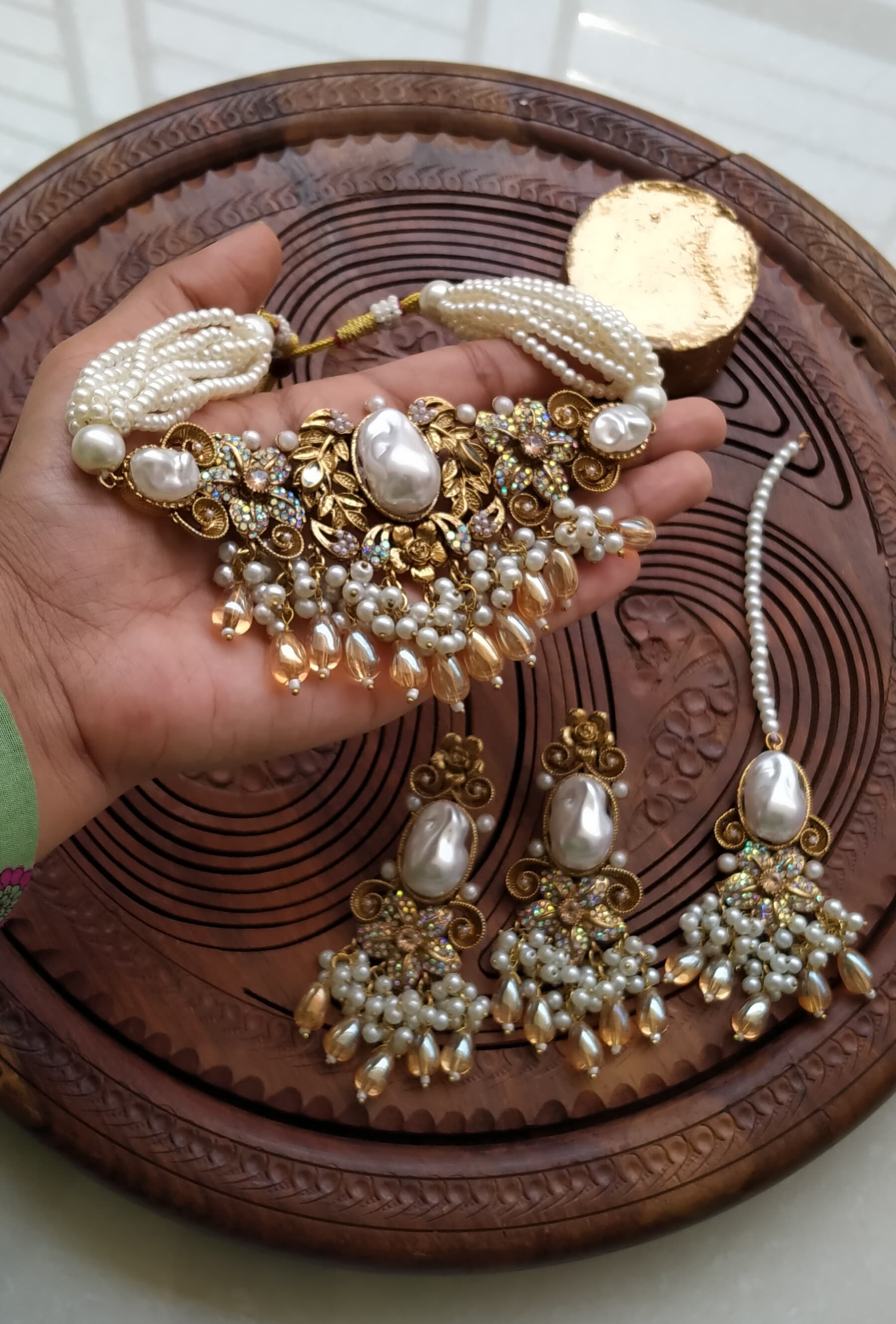 *Handmade turkish work with mother pearl chokkar set with teeka*
