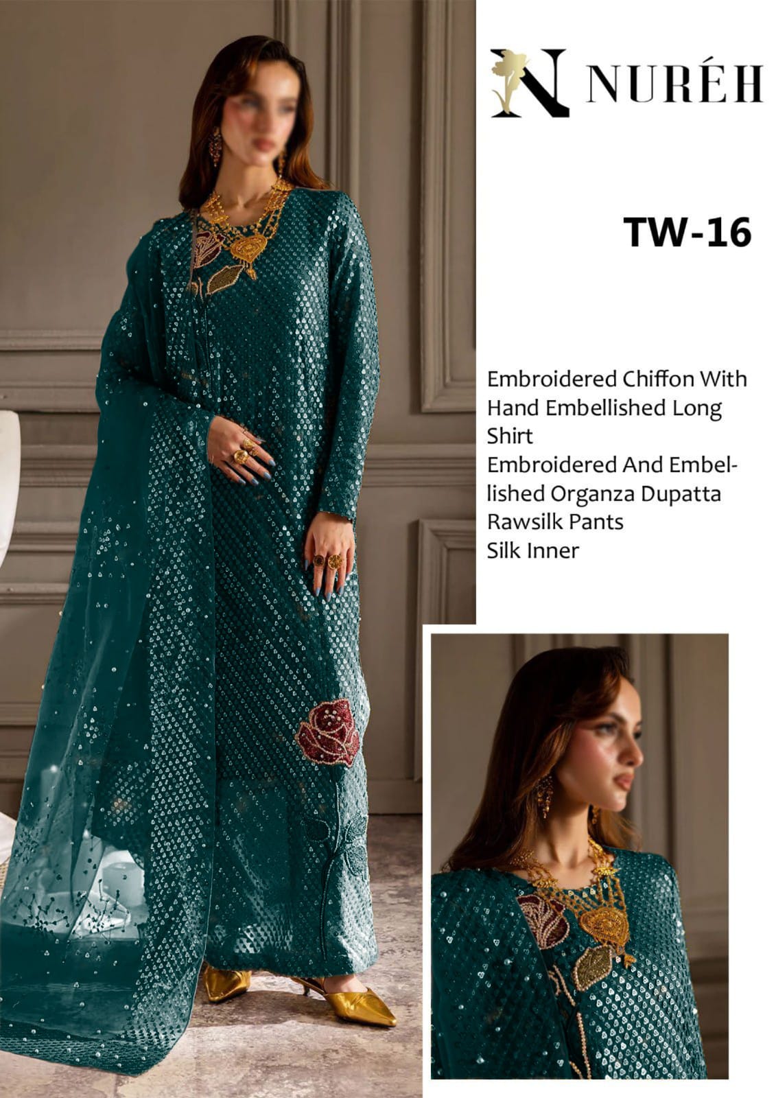 Fully Heavy Embroidery Chiffon Front