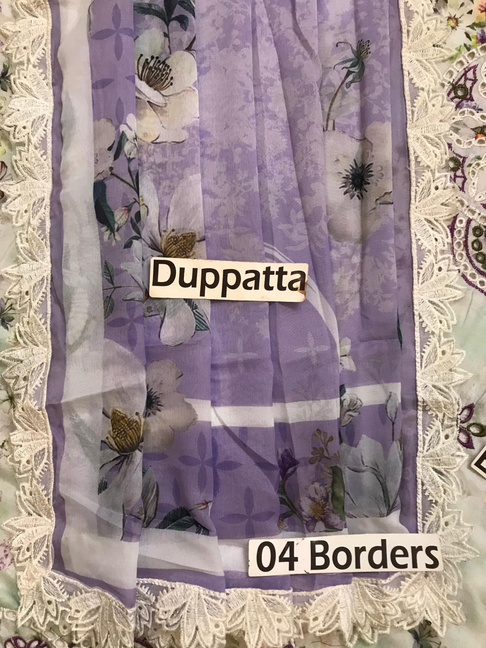 Heavy Embroidered Chiffon Dupatta With 4 Sides Cut Work Border Applic