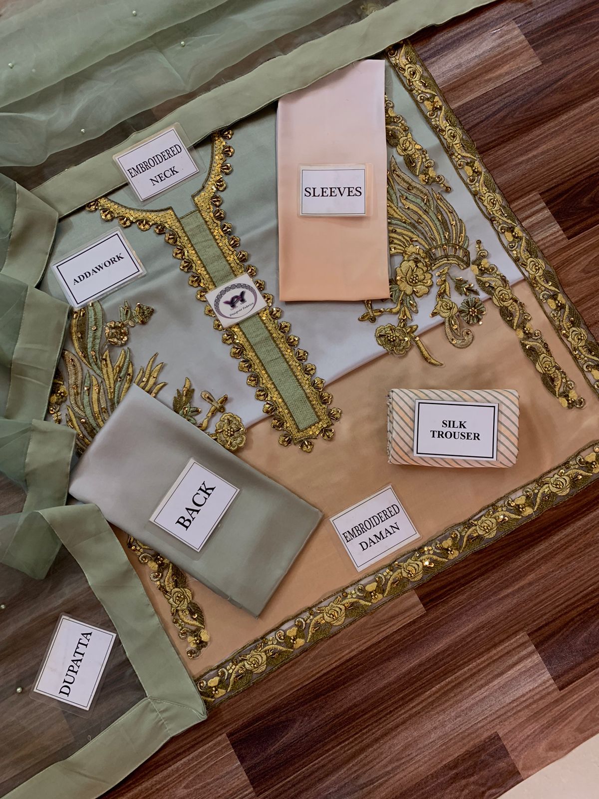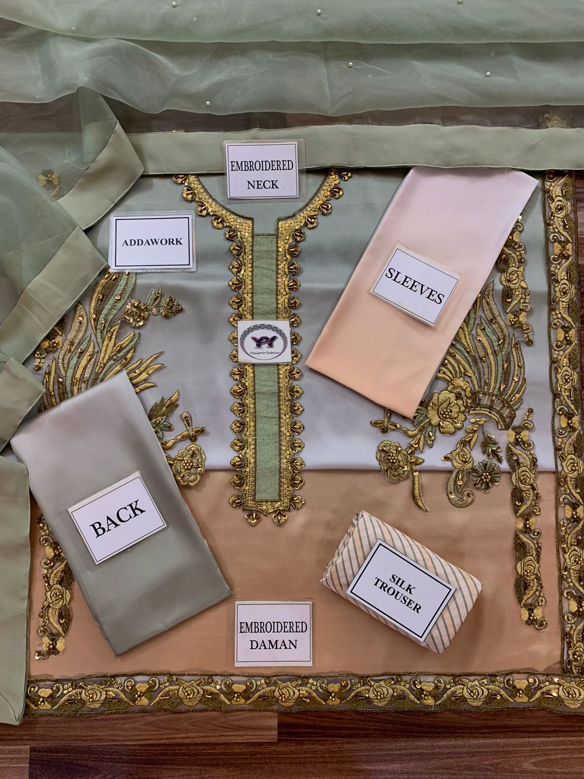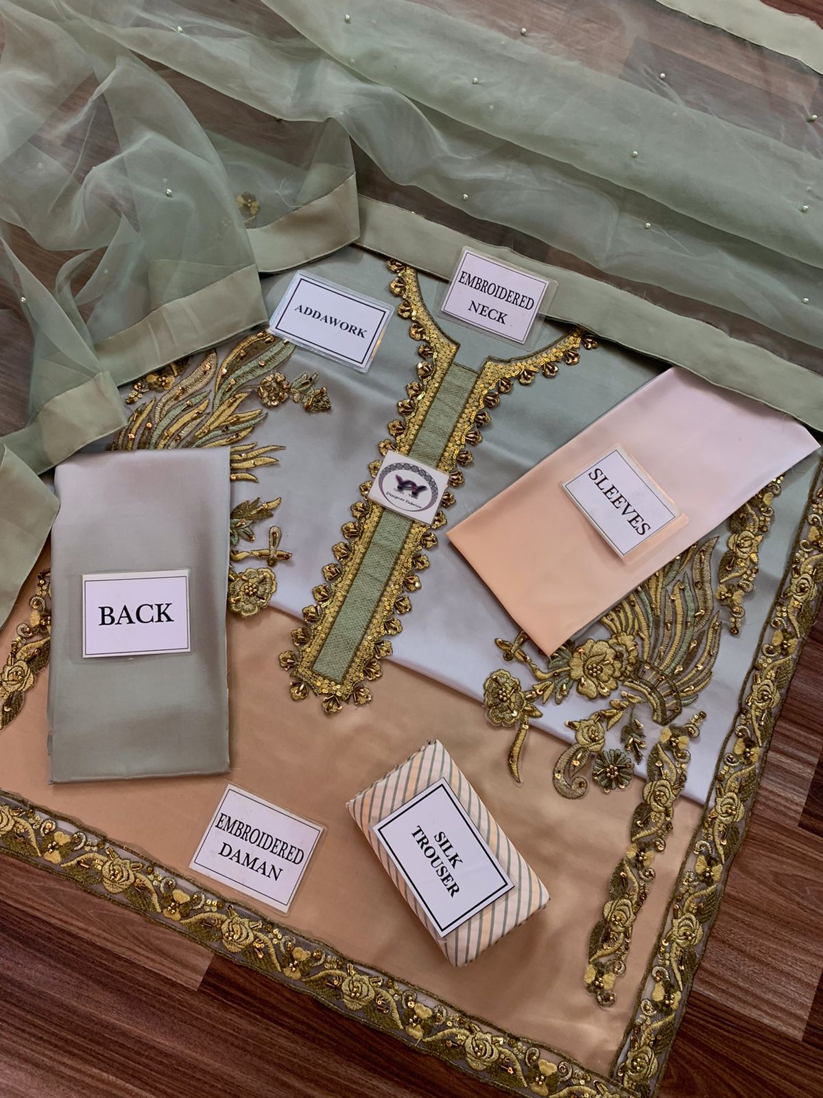ORGANZA DYED DUPATTA EMBELISH WITH PEARLS ATTACHED ALONG WITH 4 SIDE ASSEMBELED APPLIQUE DUPATTA