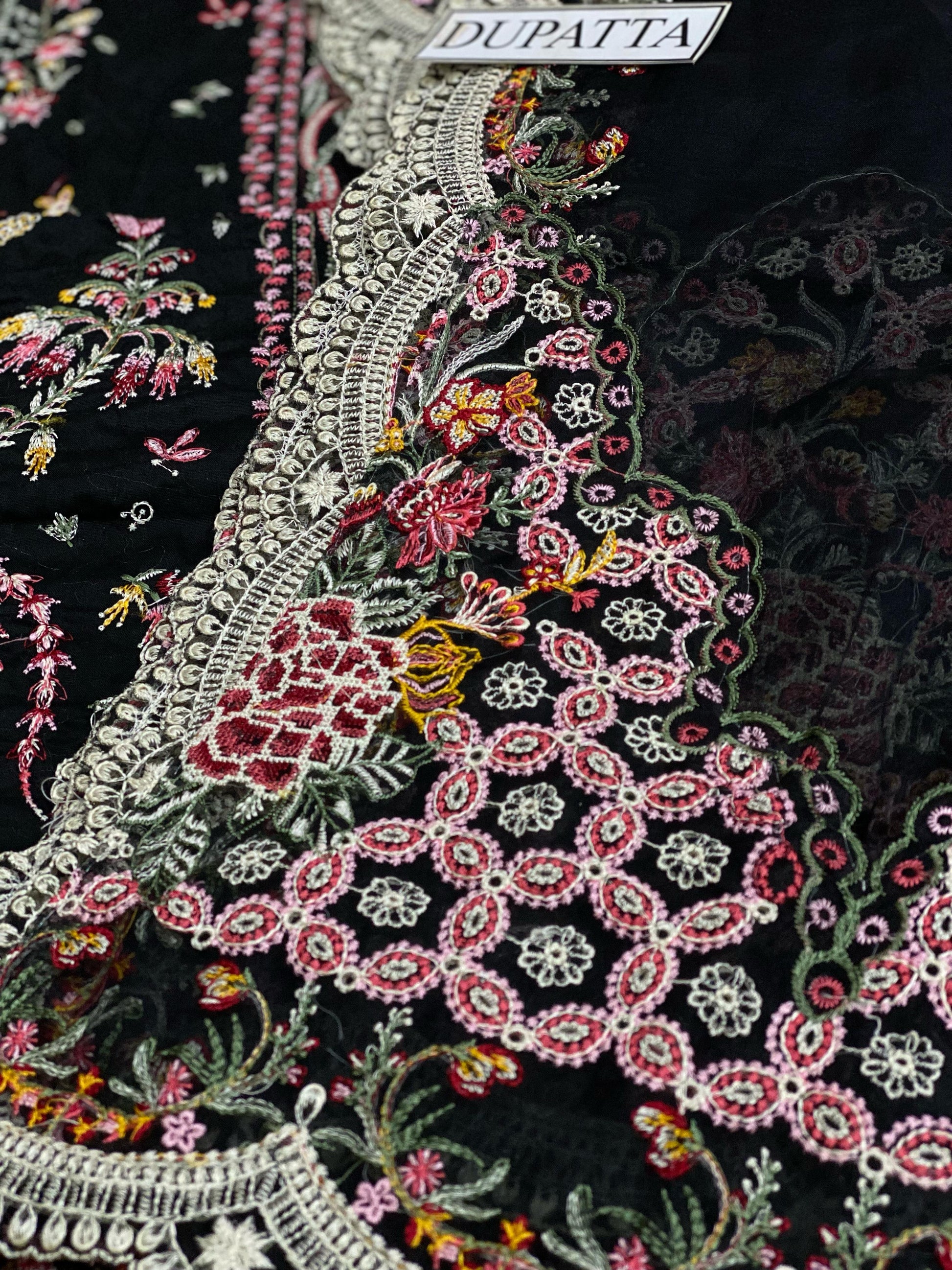 Heavy Embroidered Front Multi Threads Work With Embroidered Daman given on Organza