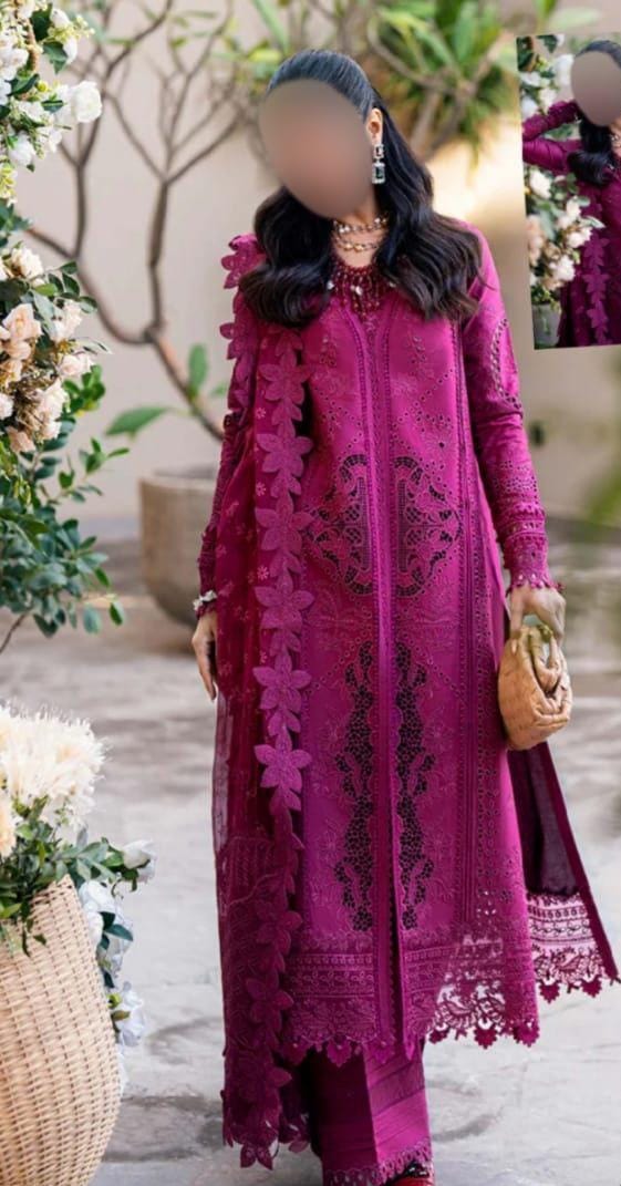 Lawn Fully Heavy Embroidered Schifflie Front With Heavy Embroidered Daman On Organza