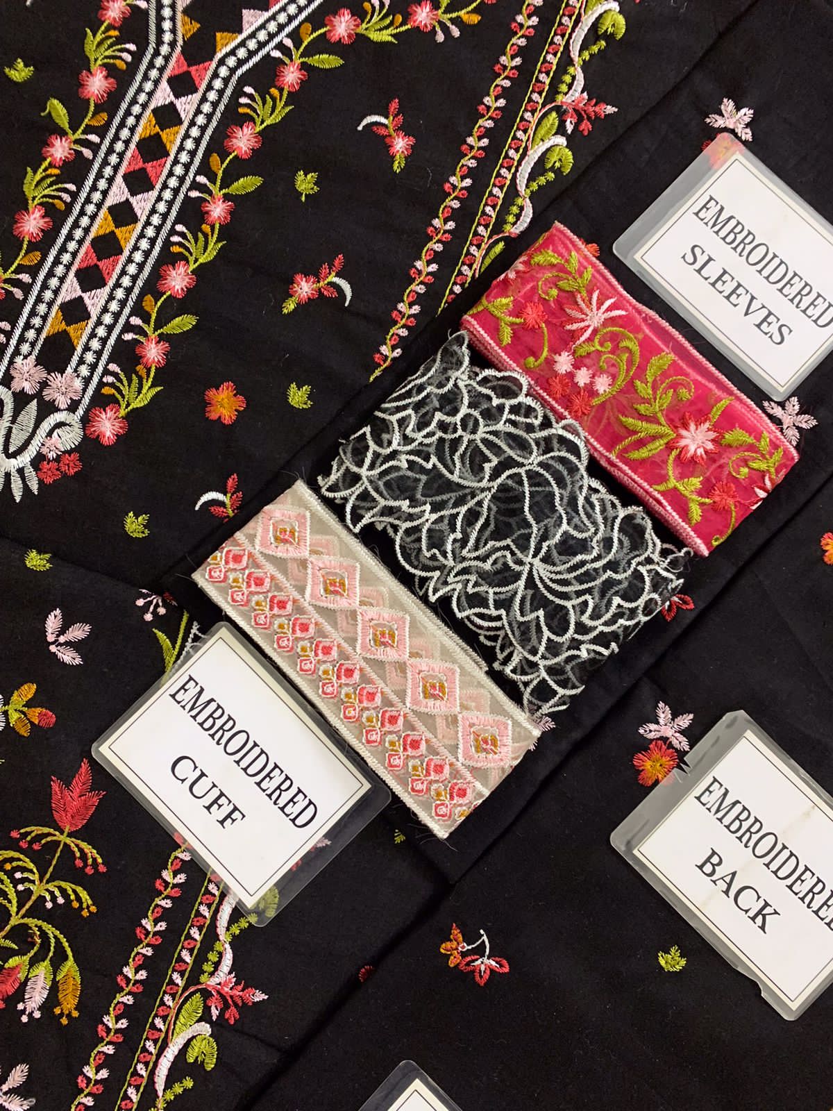 HEAVY EMBROIDERED COTTON SLEEVES WITH EMBROIDERED CUTWORK AND EMBROIDERED 3 CUFF PATCHES