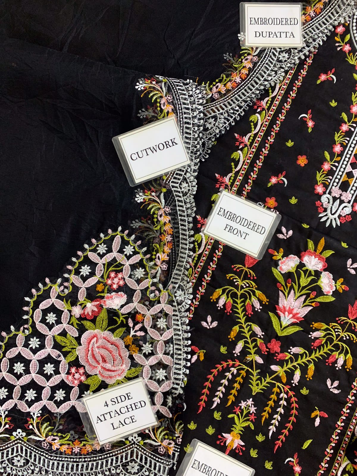 HEAVY EMBROIDERED KHADDI NET DUPATTA WITH 2 SIDE EMBROIDERED ATTACHED LACE ALONG WITH HEAVY EMBROIDERED PALLU ATTACHED