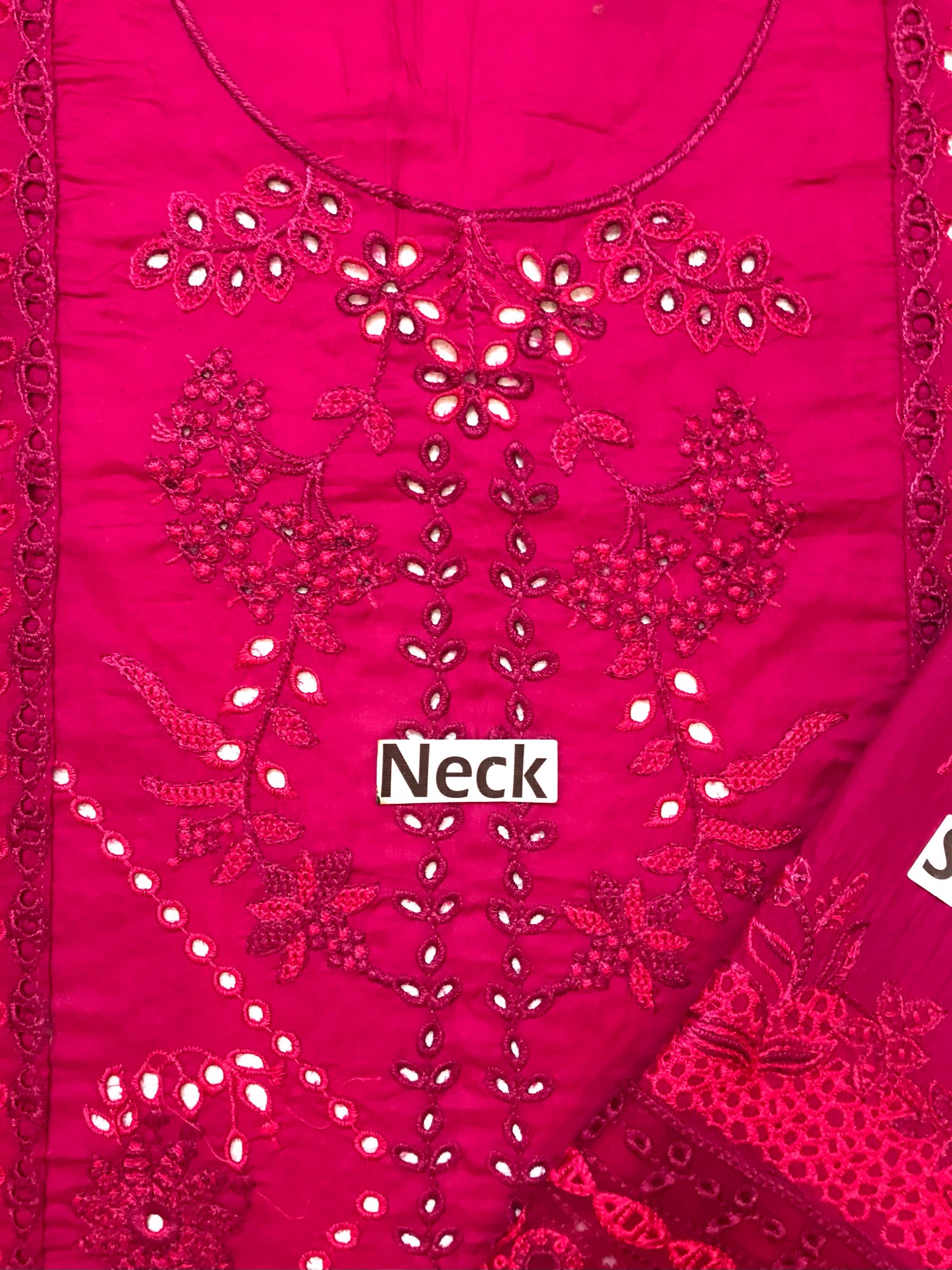 Heavy Embroidered Neck on Fabric with Chicken Kari Work