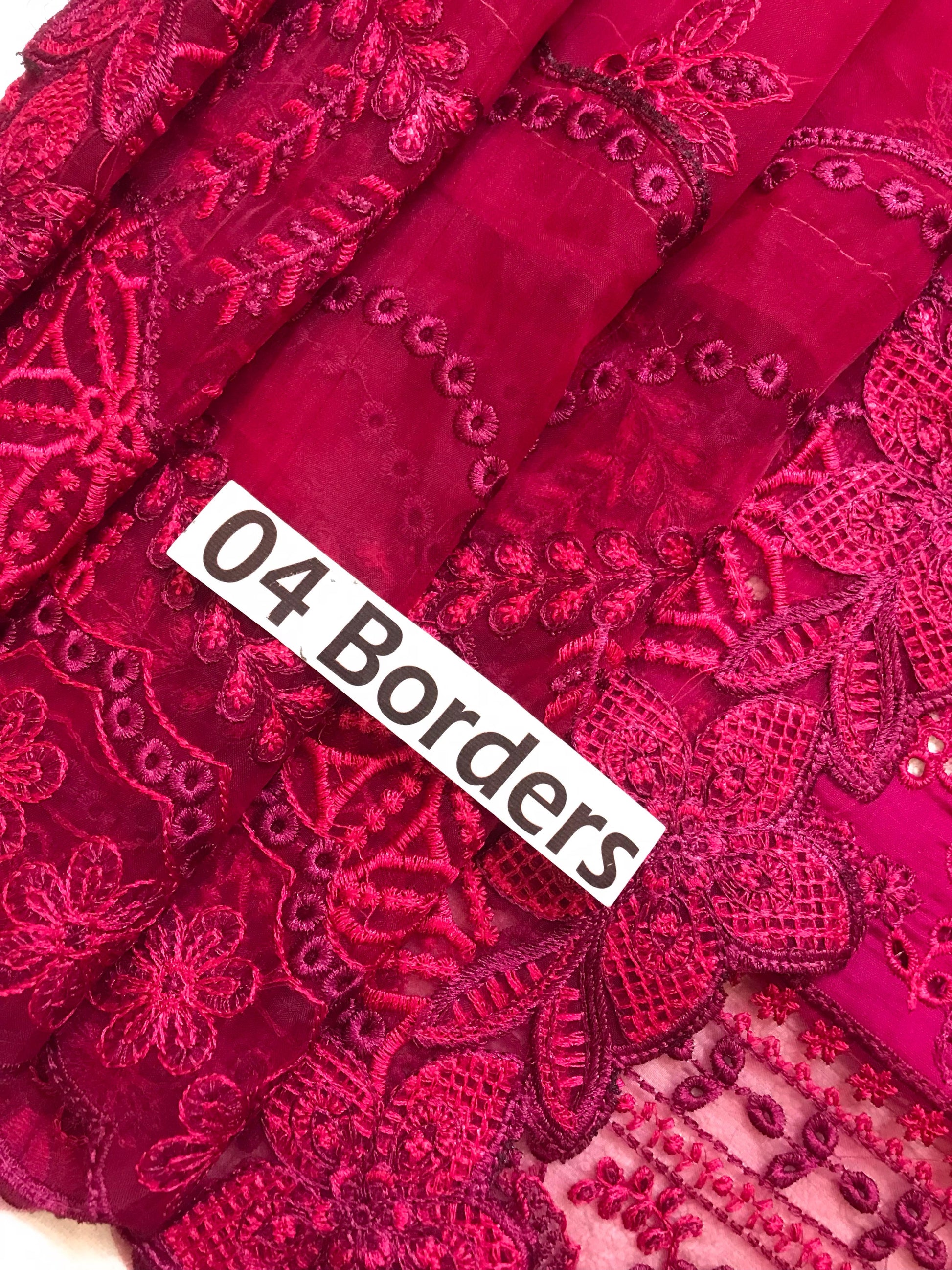Fully Heavy Embroidered Organza Dupatta With 4 Side Cut Work Border and 2 Side Heavy Pallu Embroidered
