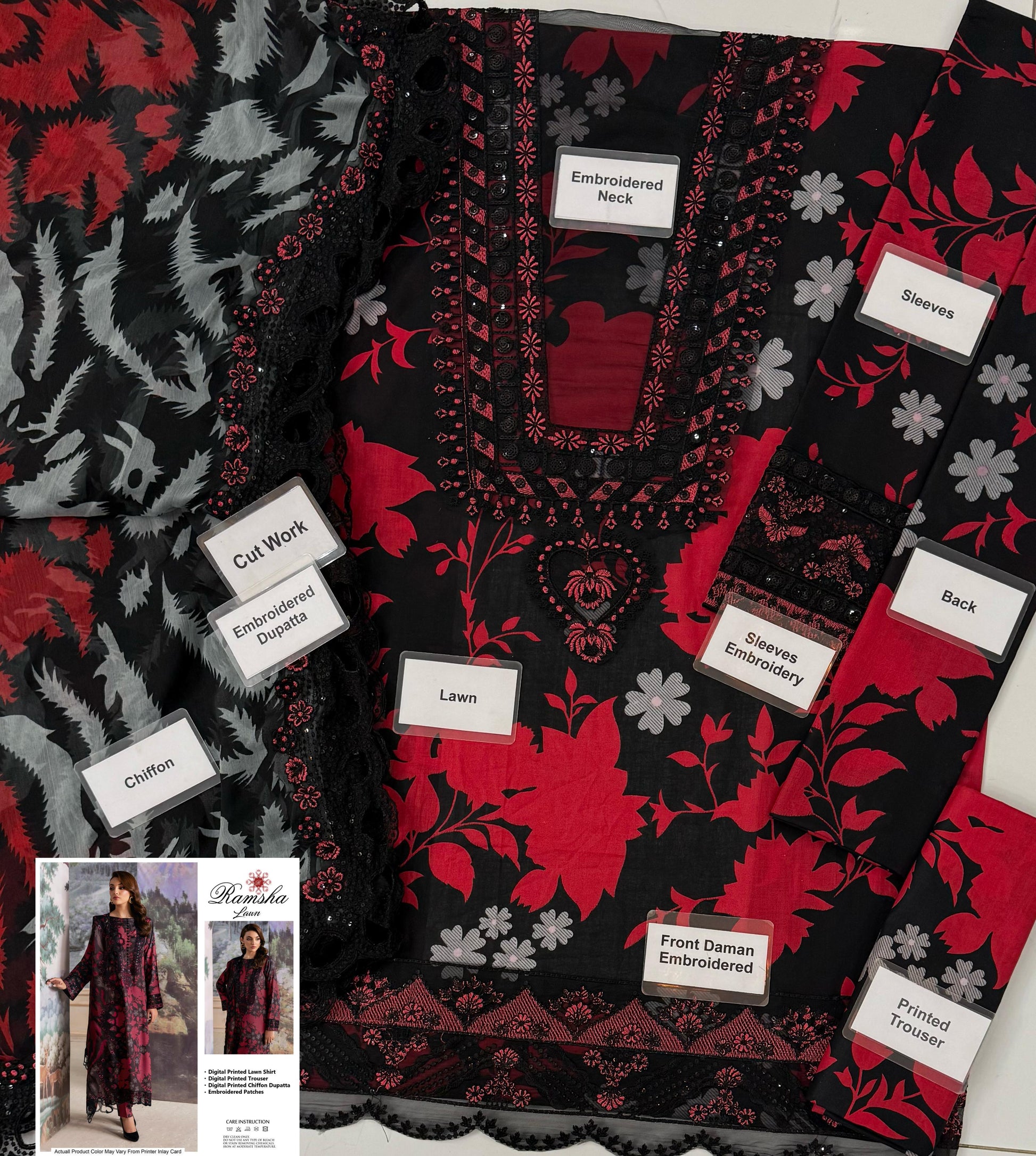 Printed Chiffon Dupatta With 4 Side Cutwork Embroidered Patch Attatched