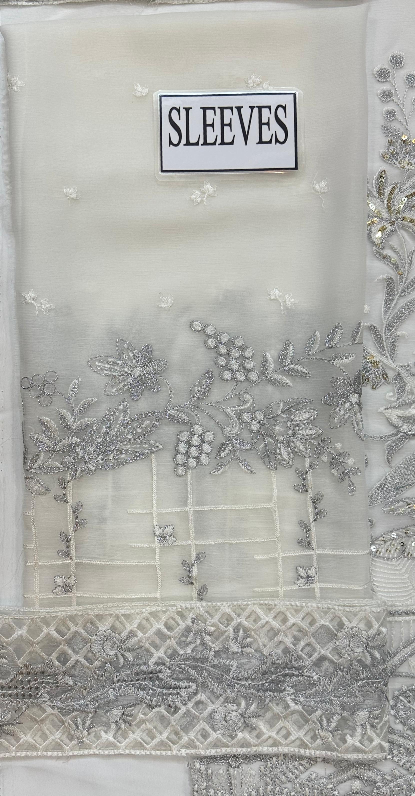 Semi Pure chiffon embroidered sleeves.