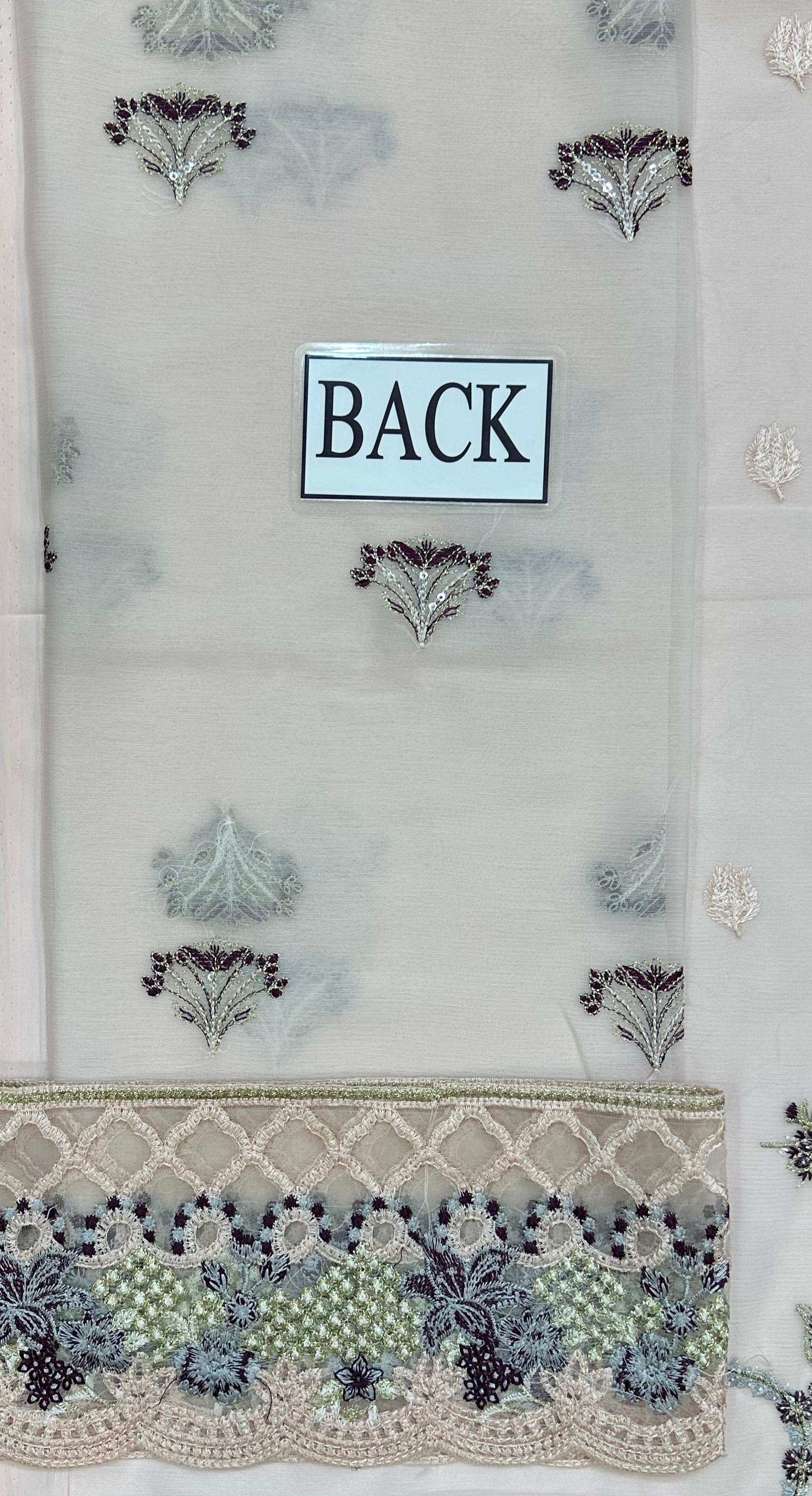 Semi Pure chiffon embroidered front with neck Hand Embellished