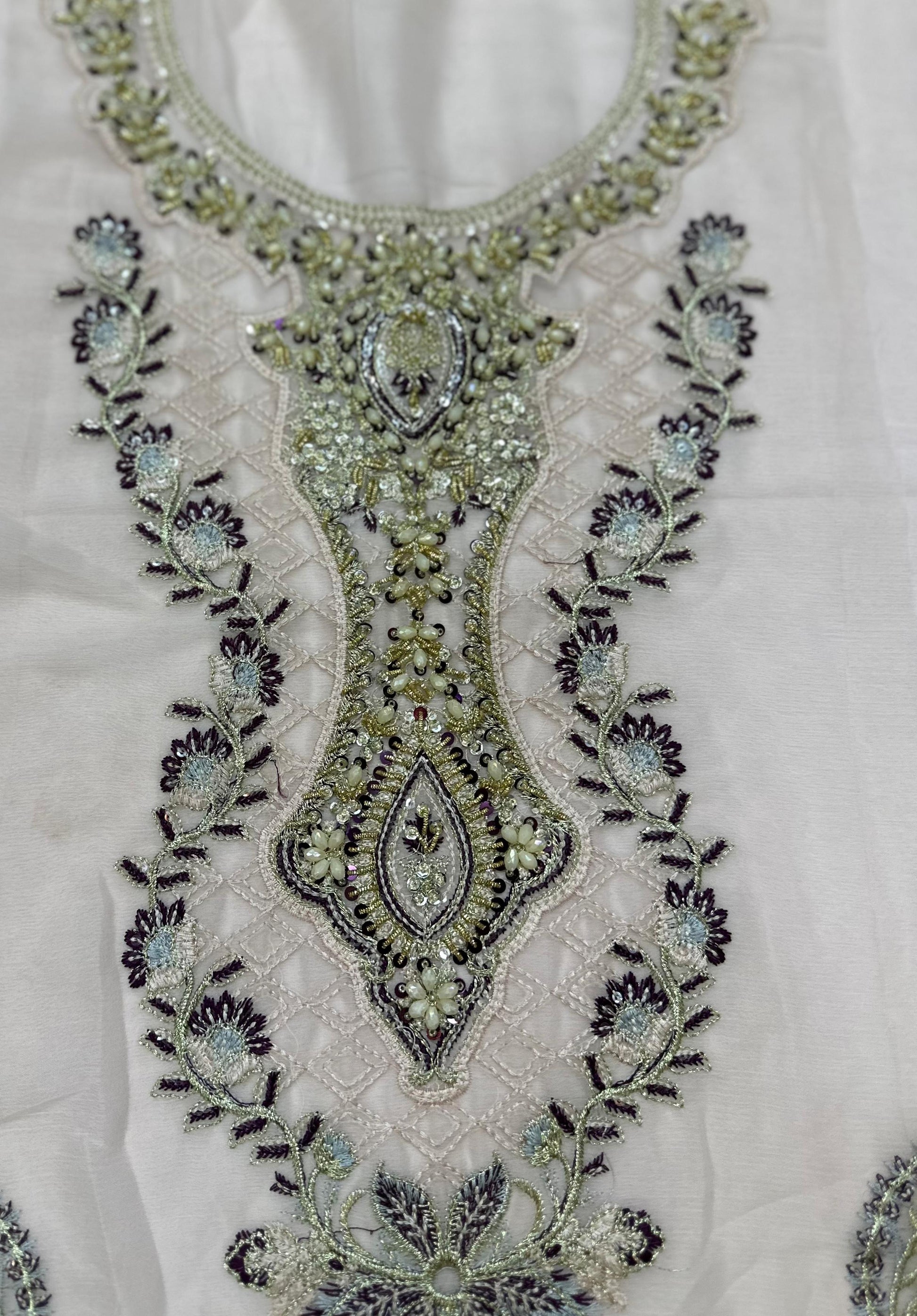 Semi Pure chiffon embroidered front with neck Hand Embellished