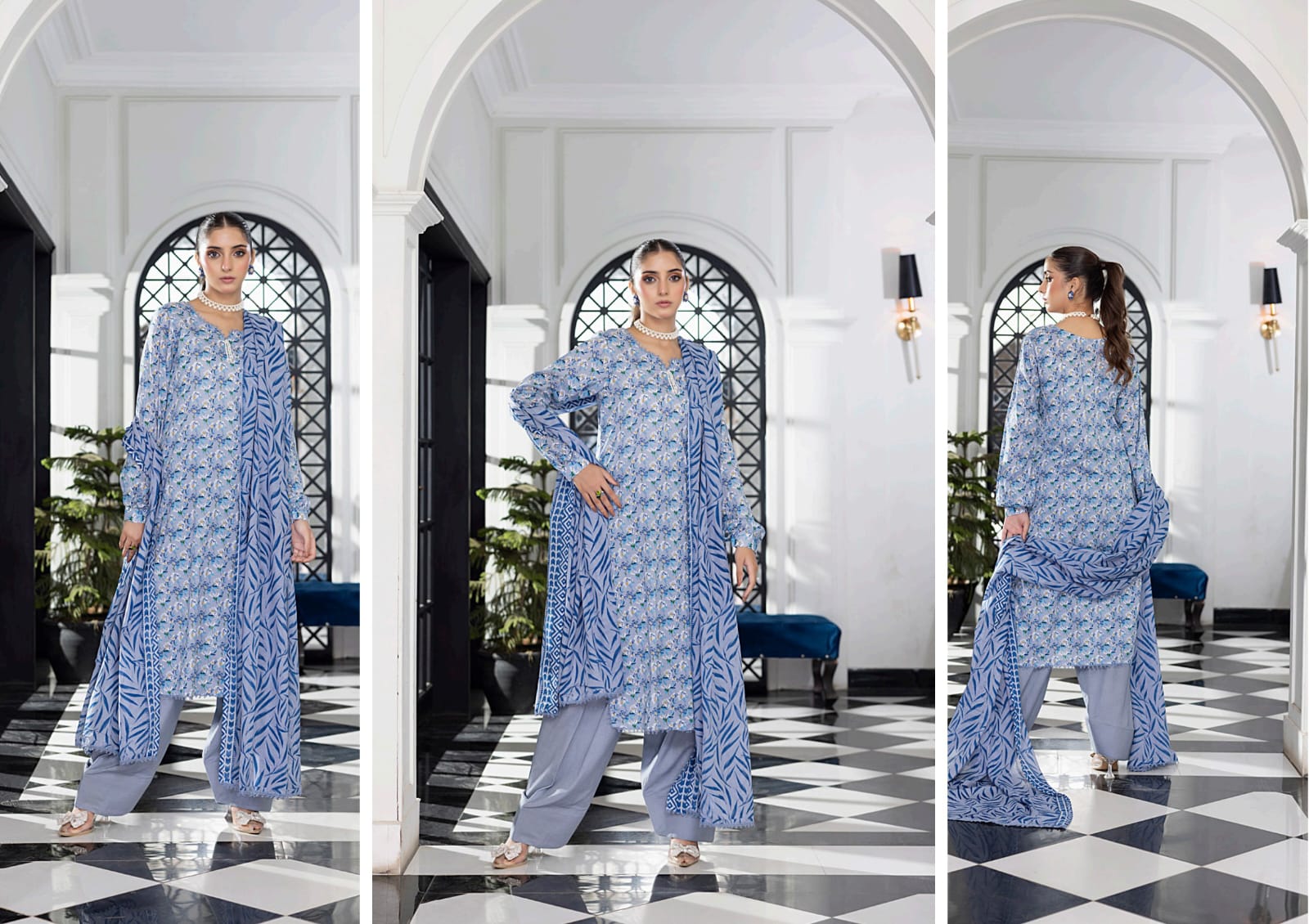 With Premium Digital Printed Lawn Dupatta & Premium Dyed Cambric Trouser
