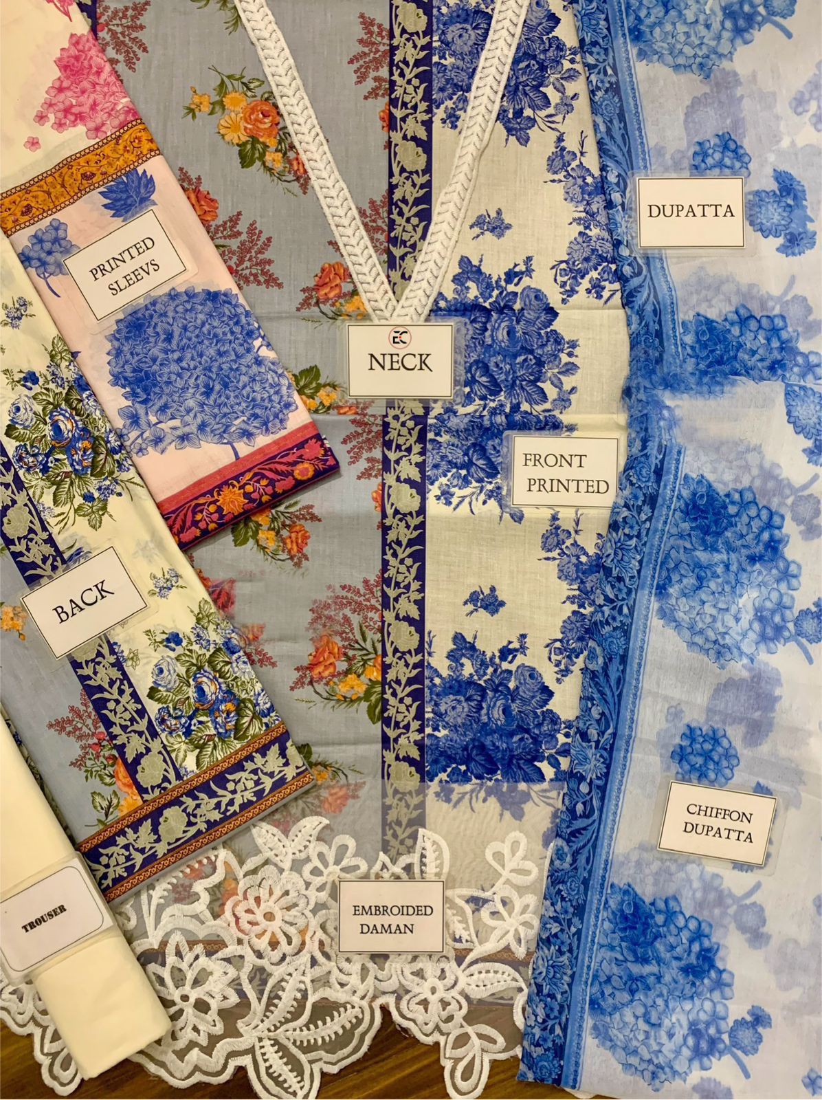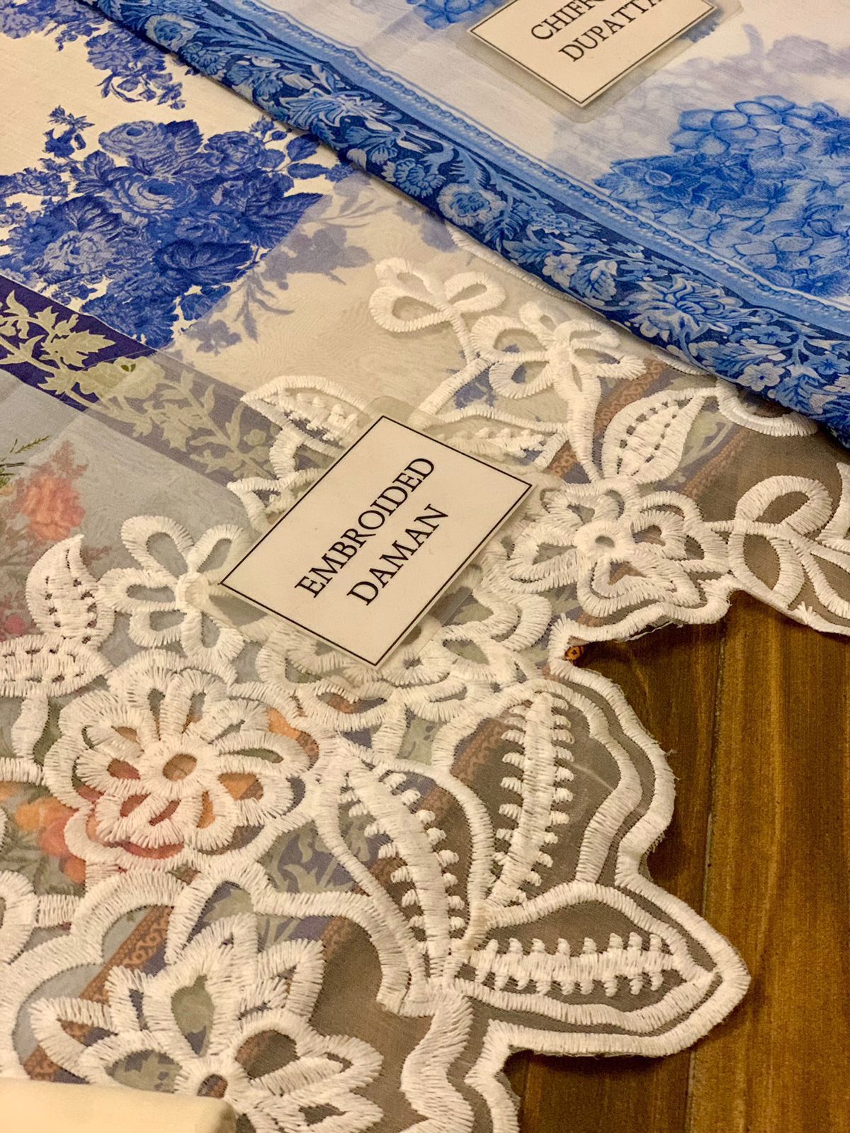 printed lawn front with fully heavy embroidered neckline with heavy embroidered daman boarder