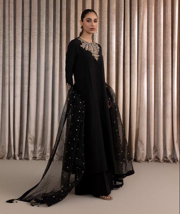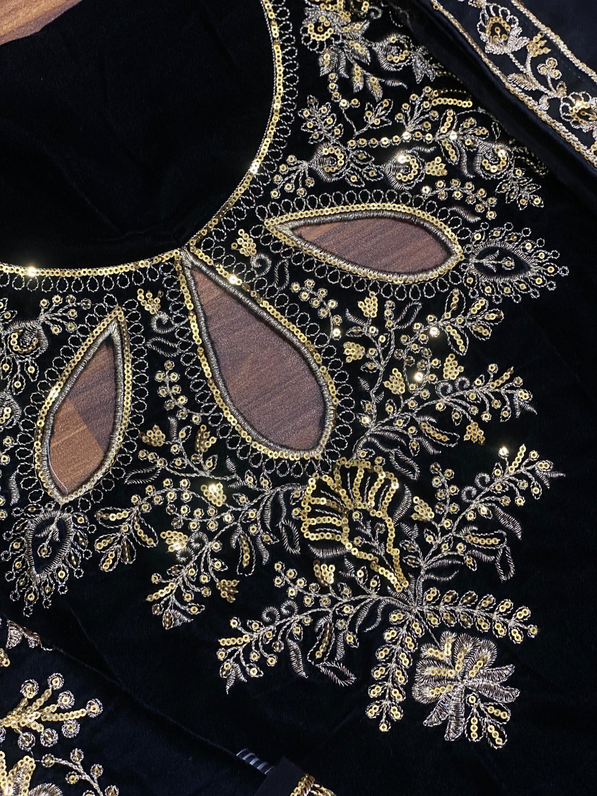Embroided Front on Velvet With Laser Work on Neck